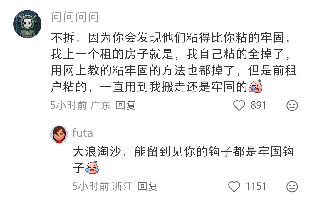 这些粘钩都能粘住一直不掉也是厉害,我粘几个掉几个