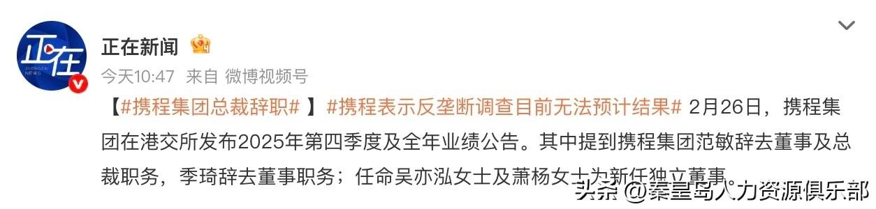 携程两位创始大佬一起“毕业”,范敏和季琦同时退出董事会,这感觉就像你们公司最牛的两个老员工突然不干了,群里直接炸了锅。 说实话,老员工退了很正常,但时机挺耐人寻味。头天晚上发财报,一年赚333亿,看着风光无限,结果细看里头一大半是投资理财赚的,主业增长其实没那么多。更巧的是,上个月国家刚立案调查携程是不是搞“二选一”、大数据杀熟,调查结果还没出呢,创始人就前后脚撤退了。你说这是功成身退,还是闻到风声提前下船?尤其范总去年还连续减持股票,套了七个多亿,这操作……懂的都懂。 不过公司也精,立马补位两个超级外援:一个懂酒店和跨境合规,一个擅长资本运作和风控。明摆着要从“兄弟打天下”模式,切换到“职业经理人+独董”的专业局。对我们打工人有啥启发?再牛的个人,也得跟着公司阶段转型,连创始人都不能躺在功劳簿上。最感慨的是,公司小时候靠兄弟情,长大了就得靠制度、靠合规、靠专业董事会,光靠元老情怀不够,得靠体系和专业能力。咱们打工人也一样啊,今天靠的技术,明天可能就过时了。唯一稳的就是不断学新东西,让自己变成“不可替代的独立董事”。不能躺在过去的功劳簿上,得不断学新东西,攒能迁移的核心本事。 对咱们普通用户可能是好事。你看,抖音、京东都杀进旅游赛道了,竞争一激烈,那些默认勾选、杀熟套路、高额佣金,说不定就能被监管摁住。以后订酒店机票,或许能少踩点坑。 总之,一代传奇落幕,新时代开启。老牌巨头换血求生,这戏才刚开场。咱们边吃瓜边琢磨:这职场啊,没有永远的稳定,只有不停迭代的自己。
