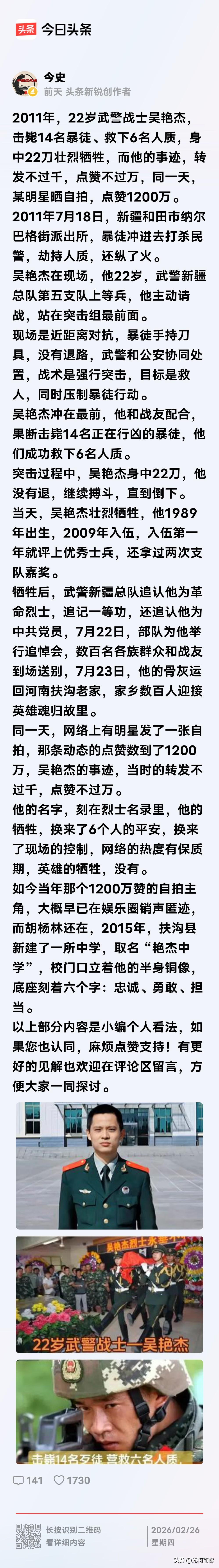 这名英雄的事迹,以前并没有看到过,今天看到这篇文章之后,被深深的感动了,他的英雄事迹可以说是感天地泣鬼神,用自己的血肉之躯,救下了这么多人,击毙了这么多暴徒,他当时是那样的年轻,是那样的帅气,在金子般的年龄里,他献出了自己宝贵的生命,向他致敬,为他点赞!