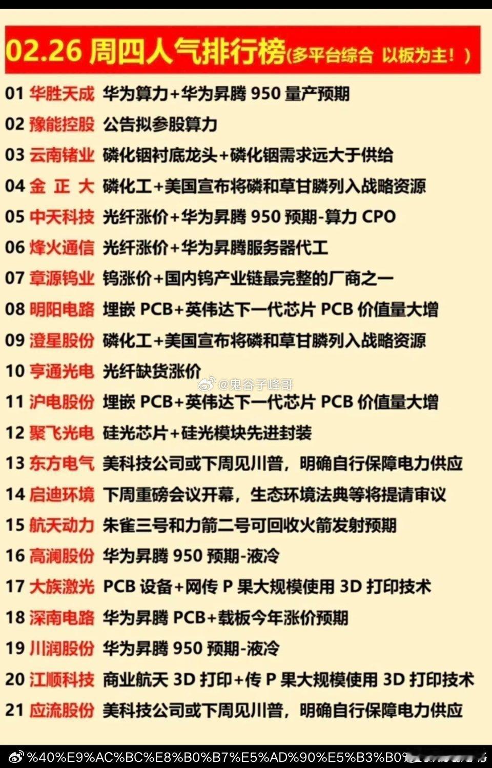 2.26周四 涨停板股票+人气龙虎榜!市场热点:1.磷化铟2.光纤涨价3.华为