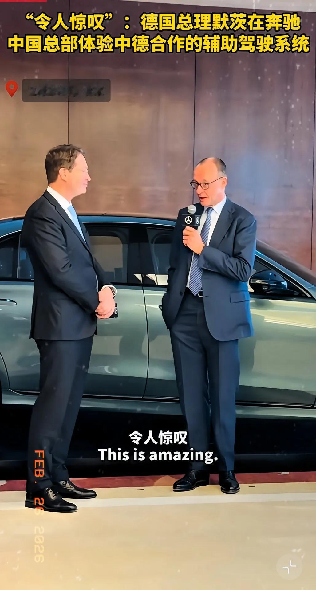 2月26日,德国总理默茨在北京参观梅赛德斯-奔驰后,深受震撼。 在体验搭载于奔驰车上的中国高阶智能驾驶系统后,他接连感叹:This is amazing! 德国总理默茨这次来北京,估计很长时间都忘不掉。 坐在自己国家引以为傲的奔驰车里,体验了一把智能辅助驾驶,当场就忍不住感叹:This is amazing! 就算身边坐着奔驰的CEO,也顾不上什么场面话了,这套系统开起来,比很多老司机都稳。 最让人感慨的是,这辆德国豪车,车身是德国的,但真正决定智能水平的“大脑”,却是来自中国企业Momenta。 今年这套系统还要搭载到9款新车上,就连奔驰的旗舰S级,都要靠这套技术提升竞争力。 曾经我们跟着德国学习造车技术,如今格局彻底反过来了,他们开始需要我们的智能化技术。 现实数据也很说明问题,德国对华汽车出口大幅下滑,再不抓紧合作,只会越来越被动。 嘴上说着所谓“去风险”,身体却很诚实,这次带着豪华企业团队来华签约,就是最直接的证明。 这就是现实:谁掌握核心科技,谁才有真正的话语权,谁才能定义真正的高端与豪华。 德国总理坐奔驰,被中国智驾直接惊艳到喊Amazing!豪车壳是德国的,大脑却是中国造,时代真变了! 看完你觉得,现在到底是谁在卡谁的脖子? 来评论区聊聊你的看法!