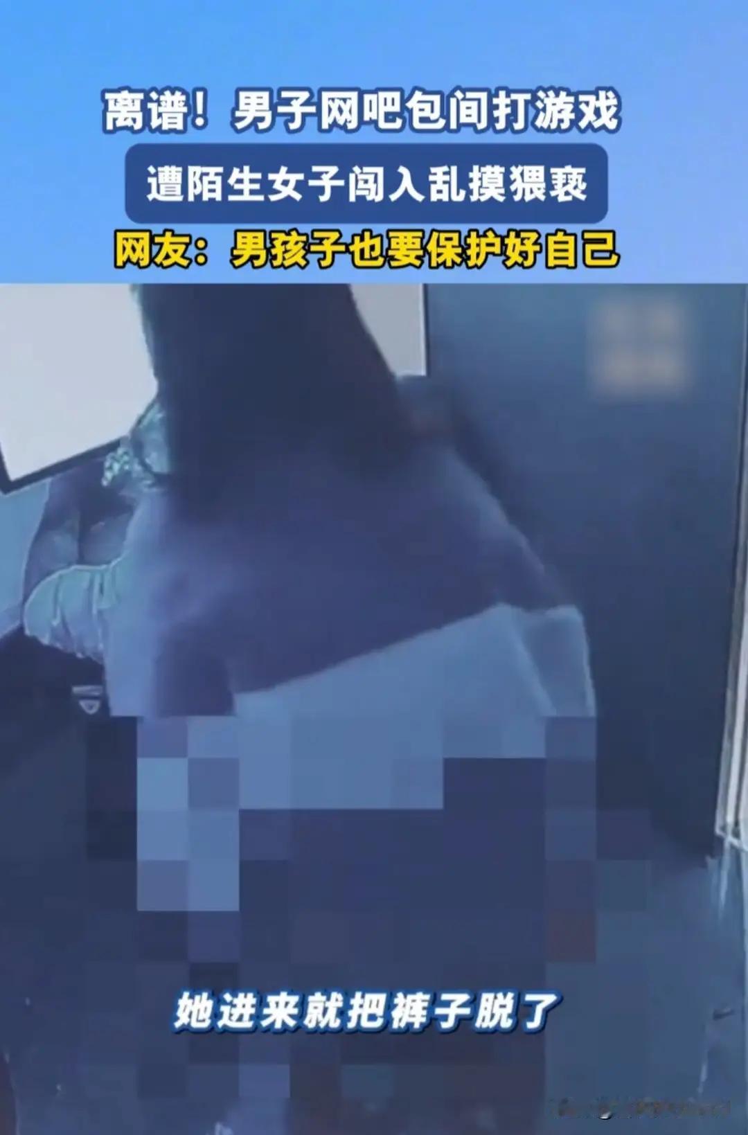 太离谱了! 湖南岳阳,一家网吧内,包间中,两个小伙在上网 ,他们正在专心致志的打游戏,突然闯进来一个女子,进来就把裤子脱了,然后拉了一把椅子,将腿搭在小伙身上,一手抓住小伙的胳膊,一手往小伙胸口摸去! 小伙脑子嗡的一下,完全吓蒙了,本能的开始喊救命!但外面的人都以为他们是情侣闹着玩,都不好意思过来! 女子更加疯狂,使劲撕扯小伙的衣服,想脱掉他的衣服,小伙疯狂躲闪,后背贴着冰冷的墙壁,退无可退,都要哭了! 因为事发突然,他的同伴起初也吓呆了,反应过来后赶紧帮忙 ,但那个女人力气很大,怎么也拉不开,幸好网管循声而来,问明了情况,俩人合力拉开了女子,被困小伙这才得以脱身! 不知道这女子是有精神问题还是喝断了片,看小伙那惊恐的反应,肯定不是他的女朋友! 有人说,男孩子也要保护好自己,他这样被骚扰,被惊吓,能不能追究那个女子的刑事责任?这方面的法律空白真的需要填补上了!