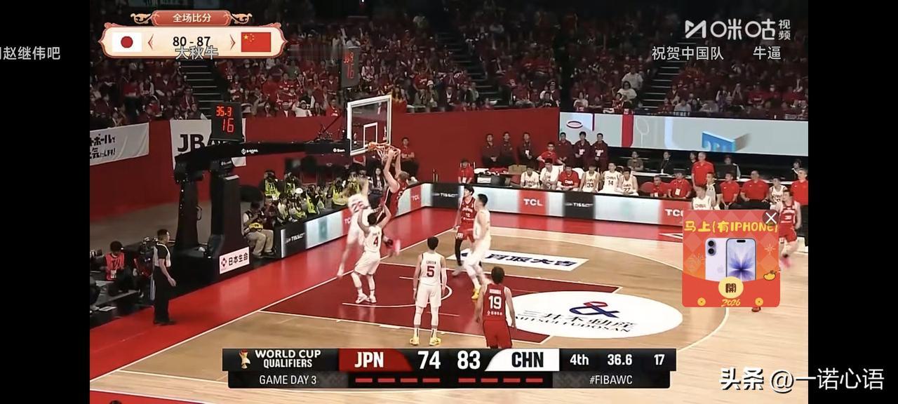中国队逆转赢了! 沈阳球迷发来贺电, 大连球迷发来贺电, 辽宁球迷发来贺电, 继伟牛!牛!牛! 大秋牛!牛!牛! 三宁牛!牛!午! 每个球员都是好样的! 杨鸣、杨键、杨毅、 三“羊”开泰,否极泰来, 直播室里,笑语喧天。 开局不利,惊天逆转, 单节25比7,逆转日本队, 郭仕强拿出了看家本领, 日本人狂不起来了。 世预赛首胜,
