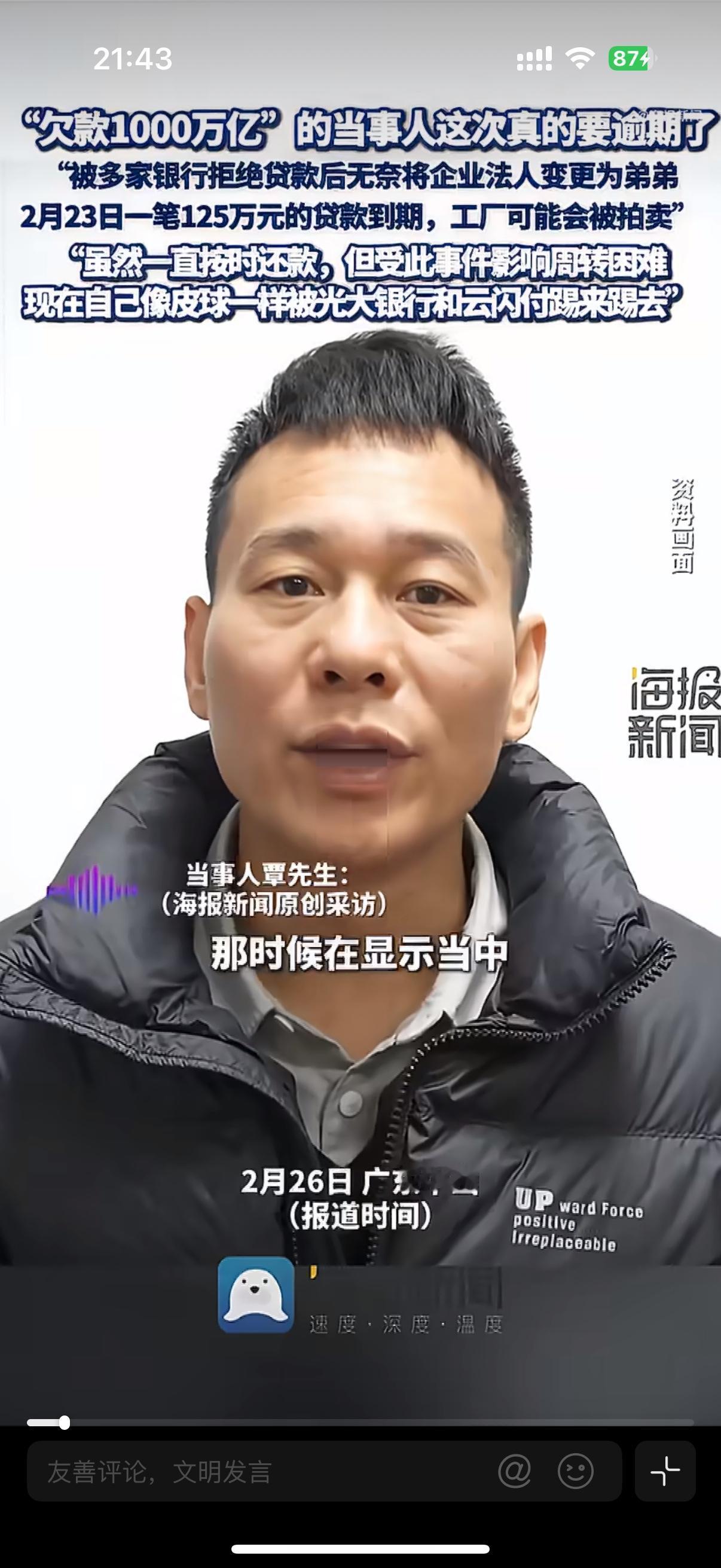广东中山一位开制衣厂的覃先生,最近遇上了一件离谱到让人不敢相信的事。他经营着一家小制衣厂,靠着踏实做工维持生计,平时用银行卡周转资金,从来都是按时还款,没有半点逾期。可就是因为银行和支付平台的系统出错,他的账户上莫名出现了一千多万亿的欠款记录,这个数字听着就像玩笑,却实实在在挂在他的征信关联信息里。 一开始他以为只是显示错误,没多想,可等到工厂需要资金周转、去银行申请贷款时,才发现自己征信异常,被所有银行拒之门外。他跑了无数次银行,反复沟通申诉,折腾了快两年,这条错误记录才终于消除,可这两年里,工厂没办法拿到一分钱贷款,资金链一点点绷紧,原本正常的生产和回款全被打乱。现在他名下有一百二十五万的贷款马上到期,实在拿不出钱偿还,已经形成真实逾期,经营了十几年的工厂,眼看就要被拍卖,一家人的生计和多年的心血,都要因为这场不是自己造成的错误化为乌有。 这件事听着像段子,却是压在一个普通小微企业主身上的千斤重担。我们总觉得系统错误离自己很远,可落到实处,就是一个家庭、一家小工厂的灭顶之灾。一千多万亿的欠款,明眼人都知道不可能是真的,可系统不认人情,只认数据,银行审核只看征信标记,没人愿意停下来听听他的委屈,没人愿意为这场明显的失误多走一步核实。覃先生没做错任何事,按时还款、诚信经营,却要为别人的错误买单,卖车卖房、四处求人,最后还是守不住自己的工厂。 这不是个例,而是很多小老板的真实写照,他们扛着房租、工人工资、原材料成本,靠着一点流动资金撑着生意,一点点风浪就能让努力付诸东流。我们不该让老实人吃亏,更不该让守规矩的人,为冰冷的系统失误付出倾家荡产的代价。一个小小的数据错误,毁掉的是一个人的人生,是一群工人的饭碗,是踏踏实实做生意的信心。大家面对这样的事,心里都会有说不出的憋屈,也都盼着能有一个公道的说法,能让犯错的一方担起责任,别让无辜的人独自承受所有苦难。 来源:海报新闻