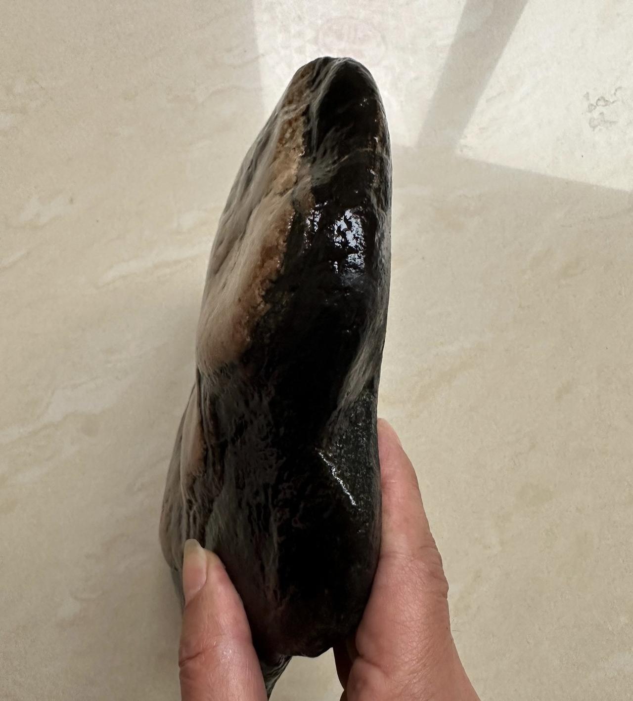我是一个对画画一窍不通的人,怎么学也学不会画画,但神奇的是,大自然竟然能形成一幅天然美丽的山水画。 今天去河滩散步,突然,看到水里的一块石头与众不同,我趟水过去,低头仔细看看,发现一个漂亮的画面出现在了水里,好像一幅天然的山水风光。 赶紧拿出水面,洗干净一看,山水画面、自然天成,您说大自然神奇不神奇?