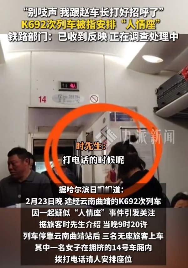 “你别吱声,我跟赵车长打好招呼了!”这一声响,直接把K692列车“人情座”炸了!这一幕更是戳碎所有打工人的尊严! 拥挤不堪的K692次列车14号车厢,无座打工人蜷缩在过道,蹲的蹲、躺的躺,连脚都没地方放! 所有人排队求补座,列车员统一回复:没票!没位!补不了! 可下一秒,刺耳的电话声直接炸穿车厢! 一名女子当众叫嚣:“你别吱声,我跟赵车长打好招呼了!” 一句话,三个无座的人,转身就走,直接被安排得明明白白! 同样是人,同样买票,我们打工人抢票抢到头秃,站一路腿肿到发麻。花钱买站票,受罪一路,连个座位都求不来;而的有人一通电话、一句“打招呼”,就能无视规则、插队坐享其成! 我也很想问凭什么?我们早出晚归、老老实实守规矩,挤火车、忍拥挤、不敢抱怨, 就因为没背景、没关系、没熟人,连最基本的公平都配不上吗? 最恶心的是那句“你别吱声”摆明了就是暗箱操作、以权谋私、欺负普通人! 规则是给我们守的,方便是给关系户留的,那这世界上还真有公正? 现在铁路部门说正在调查,可我们打工人的心,早就凉透了!我们不怕吃苦,不怕站票,怕的是努力没用,守规矩没用,有关系才有用!怕的是这个世界,笑贫不笑娼,认权不认理啊! 拿着公共资源搞人情,拿着职务之便开后门的人你们的良心不会痛吗? 咱大家伙这辈子,有没有被“关系户”狠狠欺负过?规则面前,真的人人平等吗? 对于这件事你怎么看? 人情往来 规则