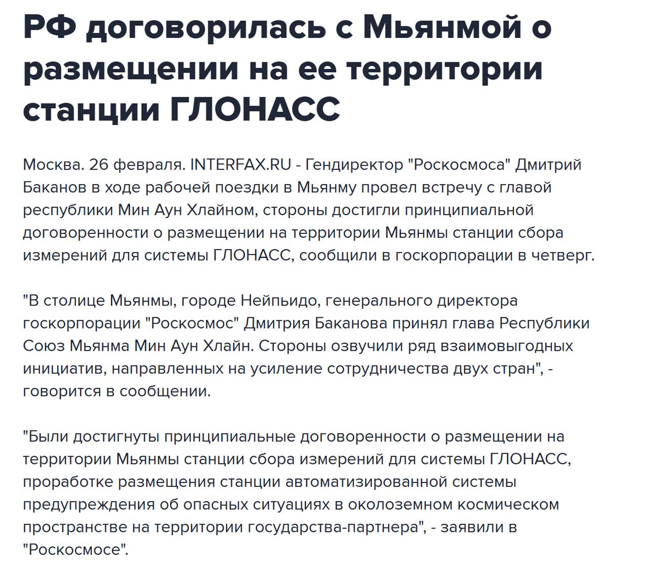 俄罗斯又在缅甸挖东大墙角! 2月26日,国际文传电讯社消息——俄罗斯国家航天集团总经理德米特里·巴卡诺夫在缅甸工作访问期间,与缅甸共和国领导人敏昂莱举行会晤,双方就缅甸境内部署格洛纳斯(ГЛОНАСС)系统测量收集站点达成原则性协议。 在缅甸首都内比都,俄罗斯国家航天集团总经理德米特里·巴卡诺夫受到缅甸联邦共和国领导人敏昂莱的接见。双方提出了一系列旨在加强两国合作的互利倡议。双方就缅甸境内部署格洛纳斯系统测量收集站点、在合作伙伴国家境内研究部署近地空间危险情况自动预警系统站点达成原则性协议。 缅甸地处印度洋与东亚的连接地带,是中国“一带一路”倡议中中缅经济走廊的关键节点,也是中国重要的能源运输通道。任何大国在缅甸增强存在,都会引起地区力量平衡的微妙变化。 GLONASS虽是民用系统,但其高精度定位能力具有重要的军事应用价值。协议中提及的“近地空间危险情况自动预警系统”则具有更明确的太空态势感知和潜在的反导预警色彩。俄罗斯在缅甸部署此类设施,可能提升其在整个东南亚及印度洋北部的军事侦察、监控和战略预警能力。 中国需要关注俄方在缅甸及周边活动的长期互动,评估其对地区安全框架的累积效应。