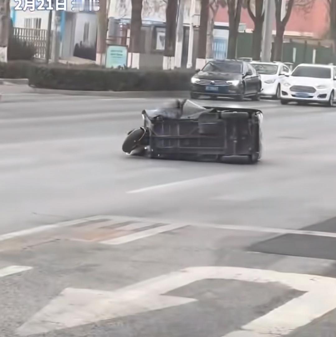 “厚德载物”具象化了!2月21日,河北某路段一辆三轮车过马路时被风吹倒,各位司机