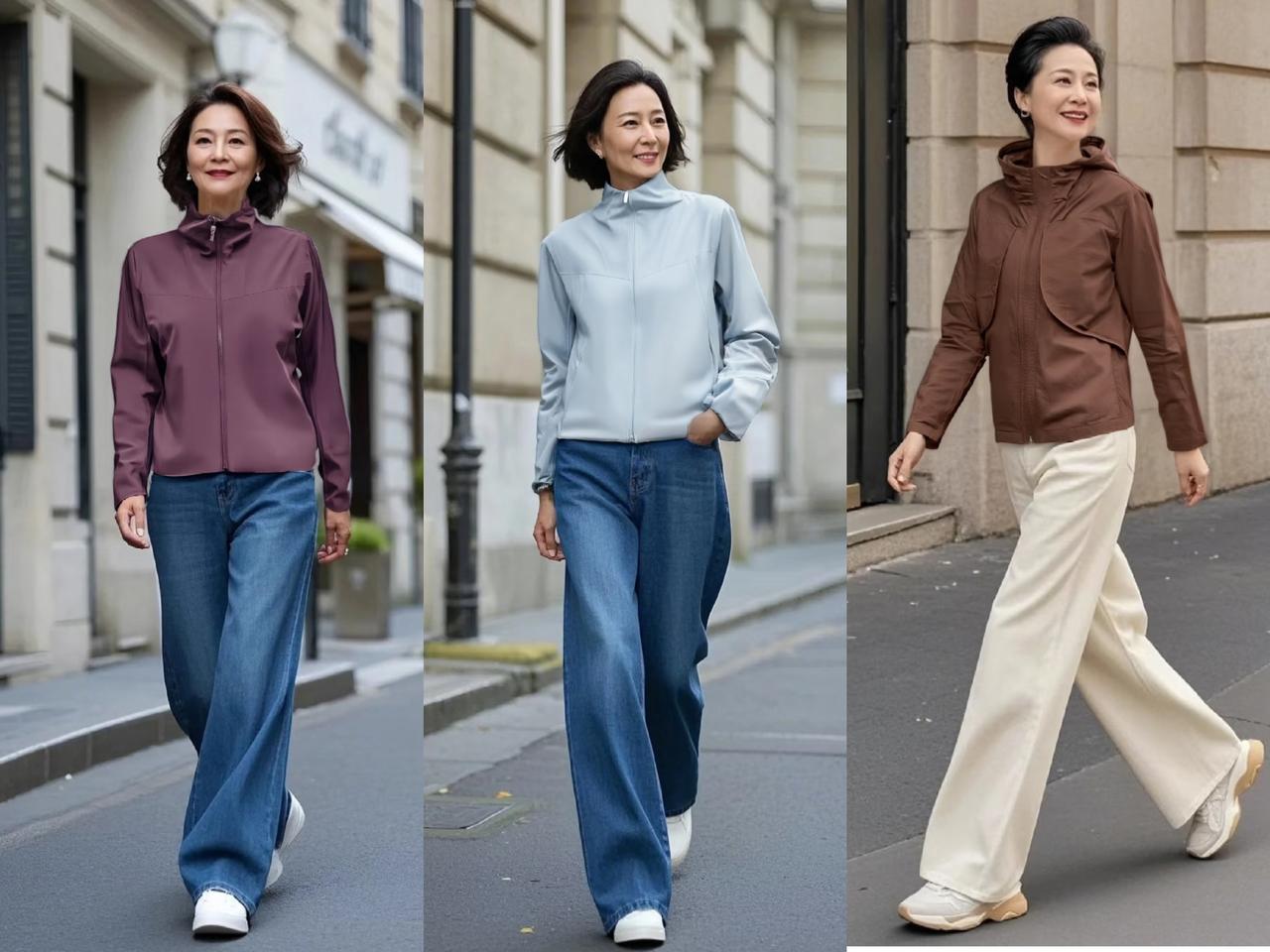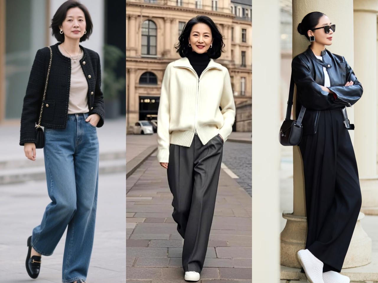 款式:选择基础款为主 基础款服装,剪裁简洁、线条流畅,版型大多是直筒型,对身材包容性强,适合大多数中年妇女穿搭。 比如衣橱里的白衬衫、针织开衫、风衣、西装、直筒牛仔裤、西装裤、A版裙等,这些基础款服装不挑身材,而且有一定遮肉显瘦效果,对中年妇女腰腹有肉、胯宽腿粗身材非常友好。而且基础款服装互相搭配,耐看不出错。 颜色:配色简单才显气质 在选对服装款式的基础上,再选对颜色搭配,就能穿出时尚有气质造型。比如选择基础色黑、白、灰组合,无论黑白配或灰白配,都容易穿出简约大方、气质高级造型。 除了基础色搭配之外,还可以选择低饱和度有彩色或莫兰迪色系,如卡其、棕色、雾霾蓝、墨绿色、酒红色等,与基础色搭配,也容易穿出优雅时尚气质。 比如,棕色短外套+米色直筒裤,或雾霾蓝短外套+牛仔直筒裤,这两组搭配都选择低饱和度色彩组合,属于同色不同深浅搭配,配色简约,整体时尚不张扬,给人一种气质高级显年轻感。 除了选对款式、配色简单之外,服装材质也不能忽视,尽量选择材质挺阔、垂感好的服装面料,穿在身上显质感,看上去就显气质,这也是穿搭时尚的加分项。中年女气质穿搭 显气质穿搭技巧 穿搭显年轻技巧