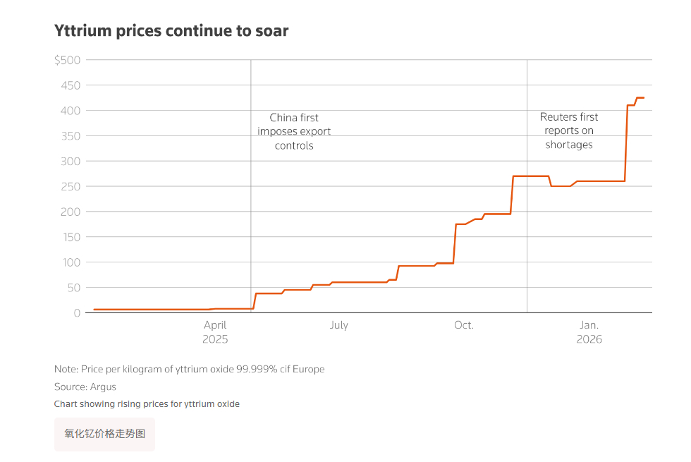 🔻路透社:消息人士称,尽管贸易紧张局势缓和,美国航空航天和芯片行业稀土短缺仍在加剧。🔻这些短缺主要集中在钇和钪等稀土上,它们是 17 种稀土元素中的小众成员,在国防技术、航空航天和半导体领域发挥着微小但至关重要的作用,而且几乎完全由中国生产。🔻关键痛点在于钇元素,该材料用于制造涂层以防止发动机和涡轮在高温下熔化。若缺乏此类涂层的定期维护,发动机便无法投入使用。🔻自路透社去年 11 月首次报道钇短缺以来,其价格已飙升 60%,目前约为一年前的 69 倍。据公司高管和贸易商透露,部分涂层制造商现已开始实施材料配给制。🔻两家购买钇以制造涂料的北美公司高管告诉路透社,由于供应短缺,他们不得不暂时停产。其中一家公司现在也开始拒绝小型和海外客户,以节省供应给包括某些发动机制造商在内的大型客户。🔻据一位直接知情人士透露,涂料供应链中的另一家公司最近材料耗尽,已停止销售含氧化钇的产品。🔻航空航天供应链专家凯文·迈克尔斯表示,钇供应短缺虽未影响发动机生产,但制造商仍对此表示担忧。🔻研究公司 SemiAnalysis 的创始人兼首席执行官迪伦·帕特尔表示,除了钇之外,美国半导体制造商也面临钪元素短缺的问题,这可能会危及下一代 5G 芯片的生产。🔻钪的全球年产量只有几十吨,在燃料电池、特种铝制航空航天合金以及先进芯片制造和封装中发挥着虽小但重要的作用。🔻帕特尔说,美国主要的半导体制造商都在制造芯片部件时使用钪,这些部件“基本上用于所有 5G 智能手机和基站”。🔻两位业内消息人士表示,美国芯片制造商近几个月在获得新的钪出口许可证方面遭遇了延迟,已经寻求华盛顿的帮助。🔻另一位美国官员说,很多此类公司此前都从第三国供应商那里获得钪,但现在要求许可证申请人申报终端用户。🔻帕特尔称:“目前美国国内没有钪产量,且除中国以外也没有可用的替代来源。”他补充表示,库存可能以月计,而非以年计。热点现场海外新鲜事