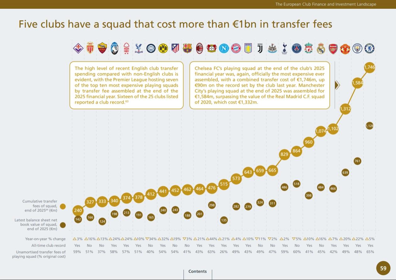 欧足联公布了球队组建成本所花费的转会费中前十英超就占了七支球队! 切尔西、曼城、曼联、阿森纳分别位居前四。 有意思“争四狂魔”阿森纳是第四,还是争来第四! 不过最尴尬的就是曼联以13.12亿高居转会费第三名,可是连欧战都没有能踢,本赛季早早就单线作战了。 拜仁只花了5.74亿居第十二,巴萨以4.62亿排在第十六,皇马为什么想免签?因为它转会费花了10.74亿排在第五比拜仁和巴萨的建队成本总和还要多,免签降成本。而它的免签引来了很多球队的不满。 拜仁和巴萨各自的花费连切尔西和曼城的零头不到,欧冠进入16强,各自联赛榜首,真是性价比啊!