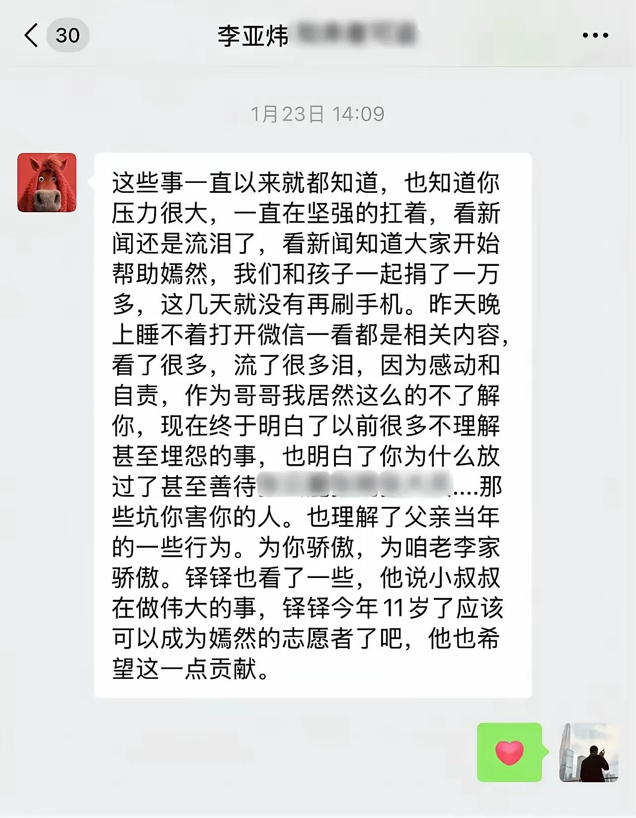 李亚鹏还有一个哥哥叫李亚炜,与他同月同日同时辰出生,两个人从小是吃一块蛋糕过生日的。他的哥哥李亚炜和他一样身高,长得一样帅气。现在很少提到哥哥。他说和哥哥小时候很好,后来长大了在人生态度上有分歧,曾经有一段时间有隔阂,没有联系。而近日,因为嫣然慈善事业被大家所知,他的哥哥也真正理解了弟弟。主动给弟弟发了信息。发了一大段,还说自己和孩子捐了1万多。甚至为弟弟流了很多泪,又感动又自责,看来哥哥对弟弟的感情还是很深的。