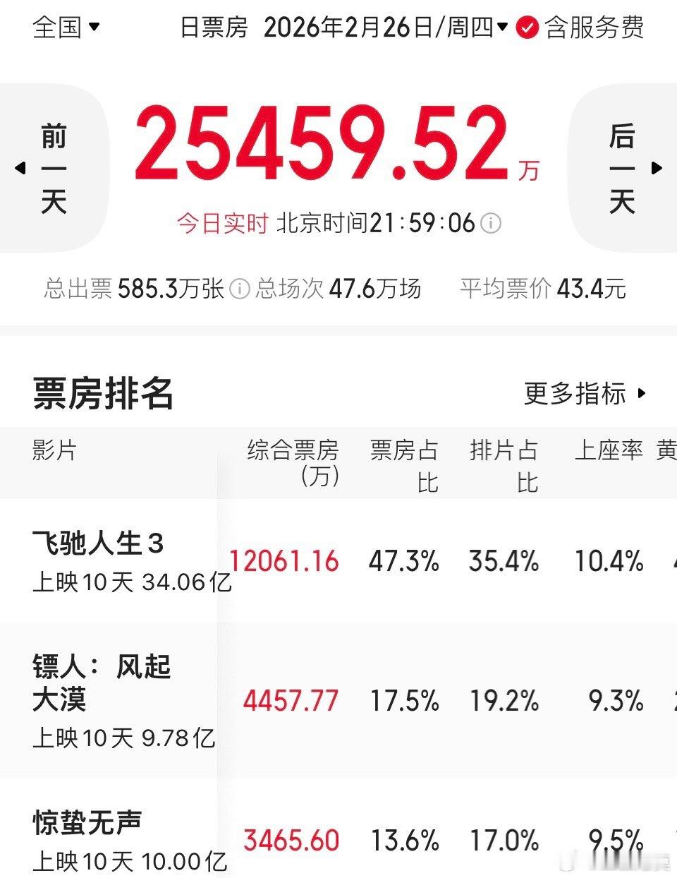 惊蛰无声票房破10亿 上映第十天,《惊蛰无声》票房破10亿,这也是今年春节档第二部票房破10亿的影片。《镖人》明天应该能破10亿。《熊出没》破10亿要到下周了。
