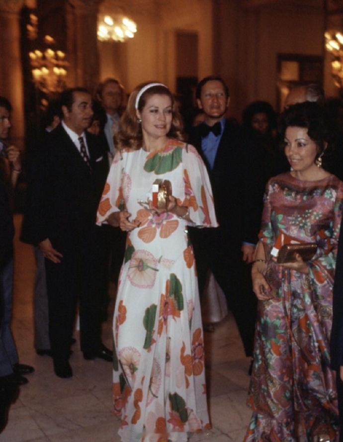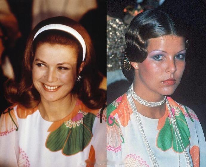 大概在70年代初期,摩纳哥王妃格蕾丝穿了一条像麻袋的白底大花裙子。其后借长女卡洛琳穿过两次 那会算算年龄格蕾丝大概40来岁,卡洛琳也就不到20岁,虽说格蕾丝已经不在颜值巅峰,但显然闺女的效果不如亲妈。卡洛琳处于土肥圆阶段,发型和妆容看着像40多的,还烤个黑炭色的皮肤,难绷 这种度假风如果真穿到海滩去,倒不会太挑颜值、身材和妆发 ps,图3格蕾丝戴的似乎就是个普通装饰性头饰,看不太清楚= =