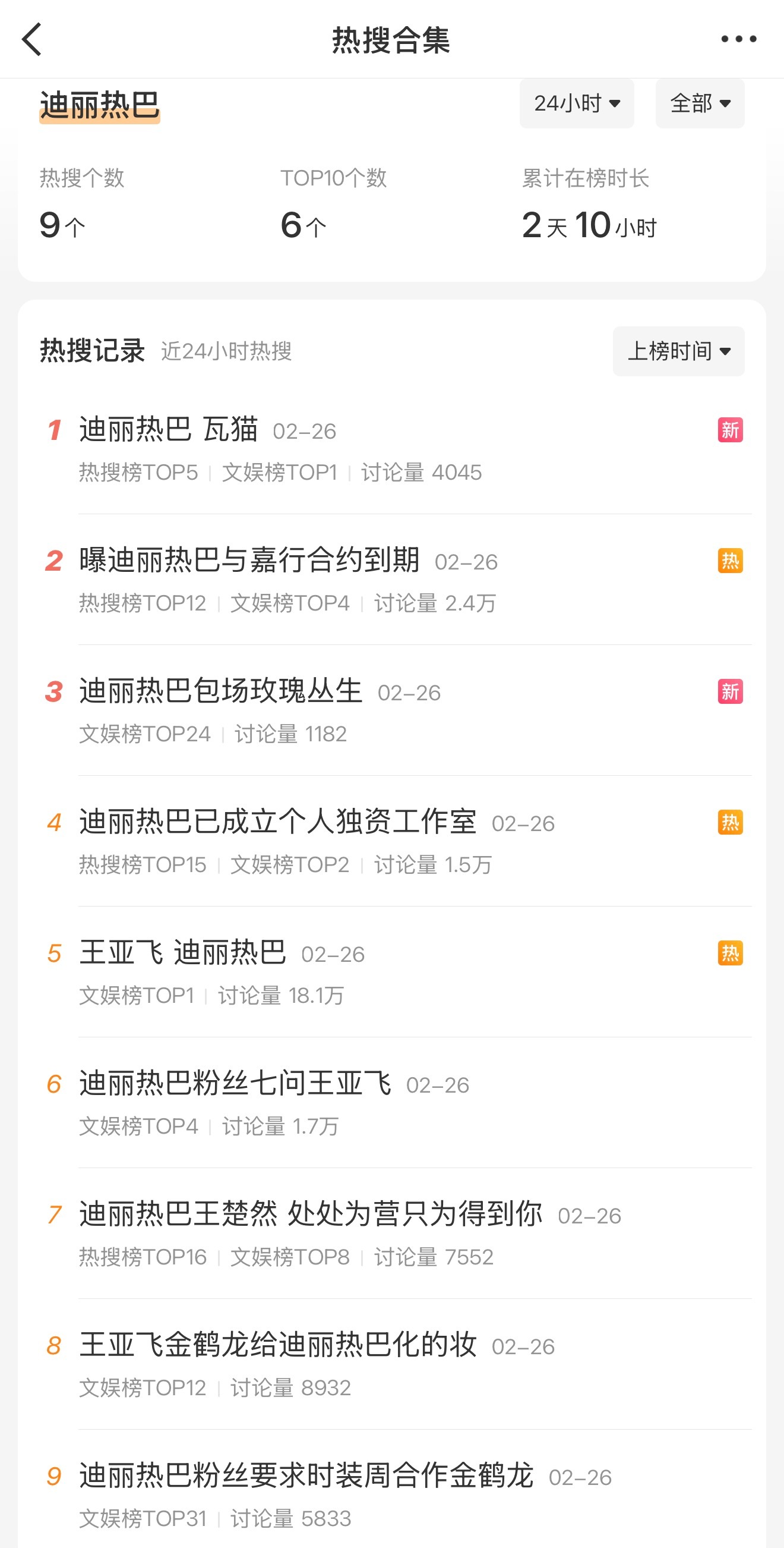 迪丽热巴瓦猫短短一天看着上了将近十个热搜迪丽热巴真是女顶话题度高xfxy…放过