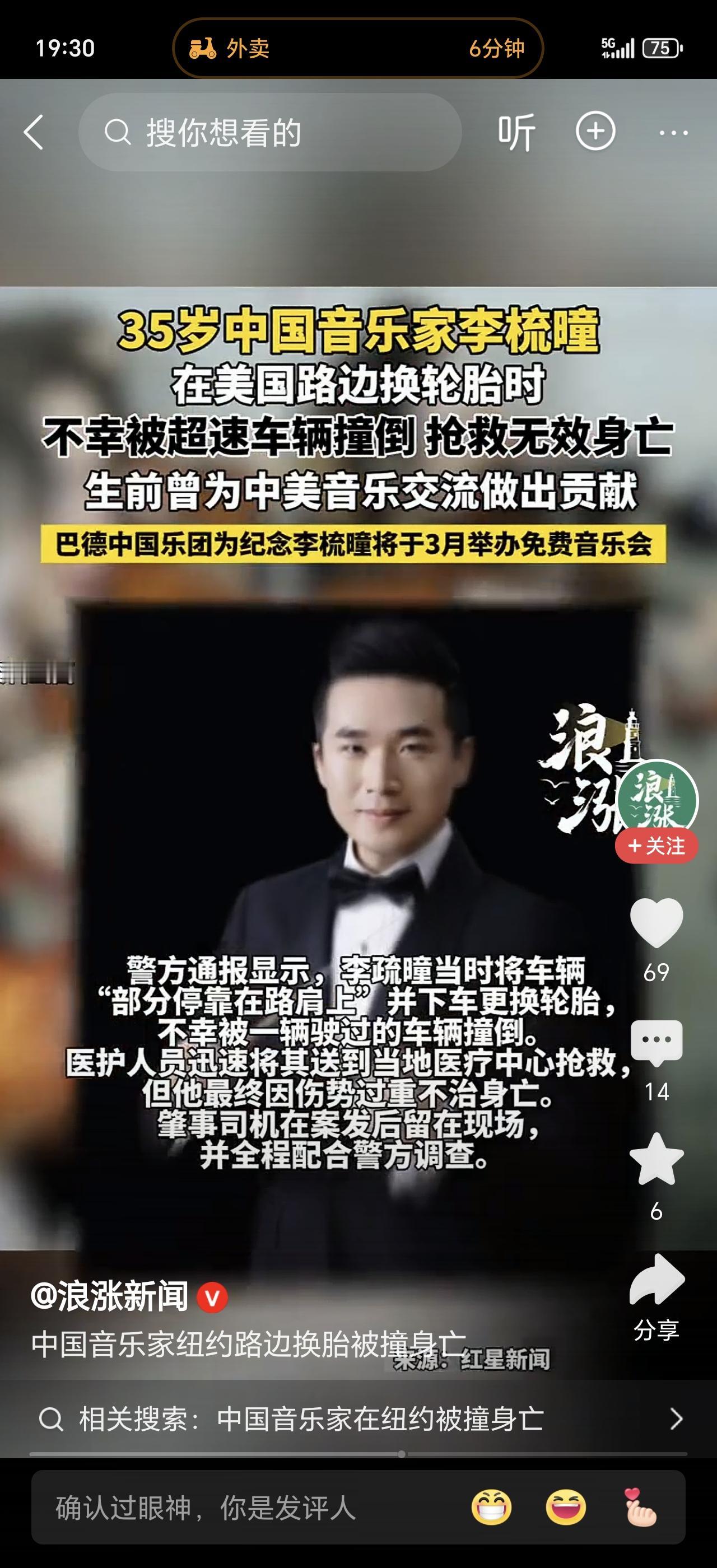 痛心!34岁中国音乐家纽约路边换胎,被超速卡车撞飞!从工科男逆袭成国际指挥,人生却在1岁儿子眼前戛然而止…… 2月11日晚11点,纽约州塔科尼克州立大道。李梳曈刚结束春节音乐会的排练,开车回家。半路轮胎突然爆了,他把车停在应急车道,下车准备换胎。 就是这几分钟,改变了一切。一辆卡车疾驰而来,重重撞上他。巨大的冲击力把他抛出去好几米,血流满地。 肇事司机65岁,当场停车配合调查。李梳曈被直升机紧急送医,抢救了两天两夜——2月13日,还是没挺过来。临终前,妻子抱着1岁的儿子守在床边,远在中国的父母连最后一面都没见到。 他今年才34岁。出生于内蒙古鄂尔多斯,大学读的是工程专业,因为热爱音乐,2013年毅然赴美从头开始。从新墨西哥大学到全美顶尖的巴德音乐学院,一步步从工科男逆袭成国际指挥。 毕业后他留校任教,一年内从助理指挥升到音乐总监,创办“音乐家为音乐家”乐团,带领巴德民族室内乐团把中西乐器融合玩出新高度。校长评价他“彻底改变了这个乐团,是不可或缺的中坚力量”。 巴德学院在社交平台发文:“我们怀着无比沉痛的心情告知大家,李梳曈不幸逝世。他是一位杰出的音乐家、尽职的教师、慈爱的丈夫与父亲。”3月9日,学院将为他举办纪念音乐会。 他原本要带乐团在纽约中国当代音乐节演出,推广中国音乐。现在,那些还没完成的乐章,永远停在了2月11日的深夜。留下妻子、1岁儿子,和远在内蒙古不知如何面对这消息的父母。 你觉得,高速路边换胎应该怎么操作才能最大限度保障安全?有没有什么保命技巧能避免这种悲剧?评论区分享你的经验,也许能救人一命。