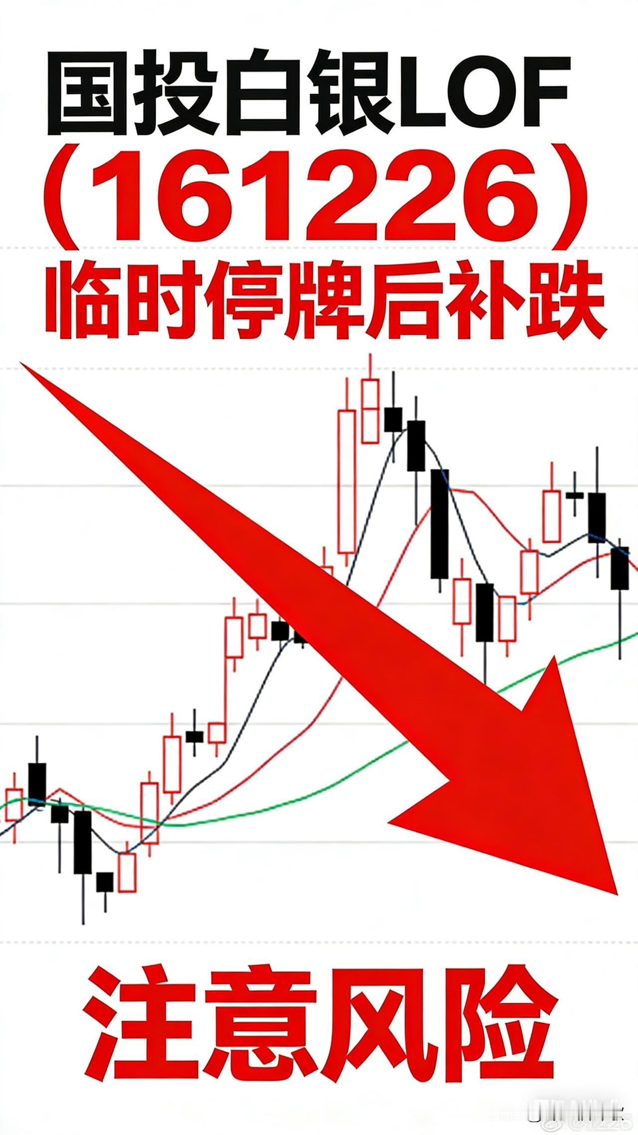 紧急提醒:白银全线重挫,国投白银LOF明日复牌或迎补跌—— 今夜(2月26日),全球白银市场遭遇“黑色风暴”: - 纽约银:暴跌5.21%,报86.86美元/盎司 - 沪银期货:重挫4.00%,报21973元/千克 - 白银T+D:下跌3.06%,报21240元/千克 而跟踪白银期货的国投白银LOF(161226),因昨日净值仅微跌1.29%,明显滞后于现货和期货的跌幅,叠加今日临时停牌,明日复牌后大概率将迎来补跌行情。 📉 核心逻辑:估值差与情绪传导 1. 估值严重滞后:LOF基金的净值更新存在滞后性,昨日的净值(2.5655元)并未完全反映白银价格的暴跌,存在明显的估值差。 2. 情绪放大效应:在A股市场,当标的对应的大宗商品出现极端行情时,相关基金复牌后往往会出现“补跌”,且跌幅可能超过标的本身,这是市场情绪和套利资金共同作用的结果。 3. 技术面破位:从日K线图看,国投白银LOF的股价已跌破多条短期均线,空头趋势明显,进一步加剧了补跌的预期。 ⚠️ 风险提示 - 作者非专业人士,以上分析纯属个人猜想,不构成任何投资建议。 - 白银价格受美元指数、地缘政治、市场情绪等多重因素影响,波动剧烈,投资者需警惕极端行情下的流动性风险。 - 对于持有该LOF的投资者,明日开盘后需密切关注集合竞价情况,谨慎决策。