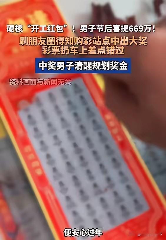 “这就是命啊!”近日,云南,一男子买完彩票后,随手往车上一扔,几天后,他看朋友圈发现自己买彩票的那家店出了669万大奖,当时男子压根没往自己身上想,直到他去车上拿东西,看到彩票顺手兑一下,才发现中奖的是自己!网友:这运气绝了! 2026年2月,云南临沧一名普通男子,意外迎来了人生中最戏剧化的幸运时刻,一张被随手丢在车里、几乎被彻底遗忘的彩票,竟让他斩获669万元巨额奖金,全程经历堪称现实版的天降好运。 春节前夕,男子像往常一样路过常去的彩票投注站,抱着轻松娱乐的心态随机选购了几注彩票,全程没有特意研究号码,也没有对中奖抱有任何期待,付款之后便随手将彩票塞进车内的储物格,转身投入到春节前的忙碌琐事中,彻底将这件事抛在了脑后。 接下来的几天里,男子忙着置办年货、走亲访友,全身心沉浸在节日的氛围里,既没有留意开奖时间,也没有想过要核对彩票号码,那张薄薄的彩票一直安静躺在车内角落,无人问津。 开奖结果公布当天,男子依旧没有任何察觉,日常作息与生活节奏没有丝毫变化,对于自己手中握着巨额奖金这件事,完全一无所知。 直到大年初八前后,男子闲暇时翻看手机朋友圈,一条动态瞬间吸引了他的注意力,有亲友转发消息,称他经常购彩的那家投注站,刚刚中出了一笔高达669万元的超级大奖,消息下面还有不少人留言羡慕,感叹中奖者的绝佳运气。 男子看到这条动态时,心里只有纯粹的羡慕,跟着感慨这位中奖者太过幸运,从头到尾都没有把这件事和自己联系在一起, 在他的认知里,中大奖本就是概率极低的事情,自己只是偶尔购彩的普通彩民,根本不可能成为那个被幸运砸中的人。 他简单浏览完内容便划走屏幕,继续翻看其他内容,没有多想,更没有起身去车内寻找那张早已遗忘的彩票。 又过了几天,男子前往车内拿取随身物品,伸手翻找储物格时,指尖碰到了一张皱巴巴的纸质票据,拿出来细看才发现,正是春节前购买的那张彩票。 他当时并没有抱任何希望,只是抱着闲着也是闲着的心态,拿出手机打开官方开奖页面,逐位对照彩票上的号码与开奖号码。 随着数字一个个精准对应,男子的心跳逐渐加快,眼神从随意变得凝重,反复核对三遍之后,他才敢接受眼前的事实,自己手中这张被遗忘多日的彩票,正是中出669万元大奖的中奖彩票,那个让全网羡慕的幸运儿,正是自己。 巨大的惊喜瞬间席卷全身,男子久久没能平复心情,从最初的难以置信,到反复确认后的激动,短短几分钟内情绪几经起伏。 2026年2月25日,节后开工第一天,男子按照正规流程前往指定地点办理兑奖手续,顺利领取属于自己的669万元奖金。 面对这份意外之财,男子心态十分平和,没有过度张扬,也没有冲动消费规划,他明确表示不会将中奖的事情告知家中孩子,不想让孩子产生不劳而获的想法,依旧保持原本的生活节奏与教育方式。 奖金的用途规划清晰务实,首要计划是还清家中剩余房贷,减轻日常生活压力,剩余部分则妥善储蓄,专门用于子女后续的教育培养与家庭日常备用,让这份幸运真正转化为安稳生活的保障。 整个事件没有刻意谋划,没有精心选号,全凭偶然与运气,一张被遗忘的彩票、一条朋友圈动态、一次随手核对,共同促成了这场令人艳羡的奇遇,也让很多人感叹缘分与运气的奇妙。 对此,你们有什么看法,欢迎评论留言~