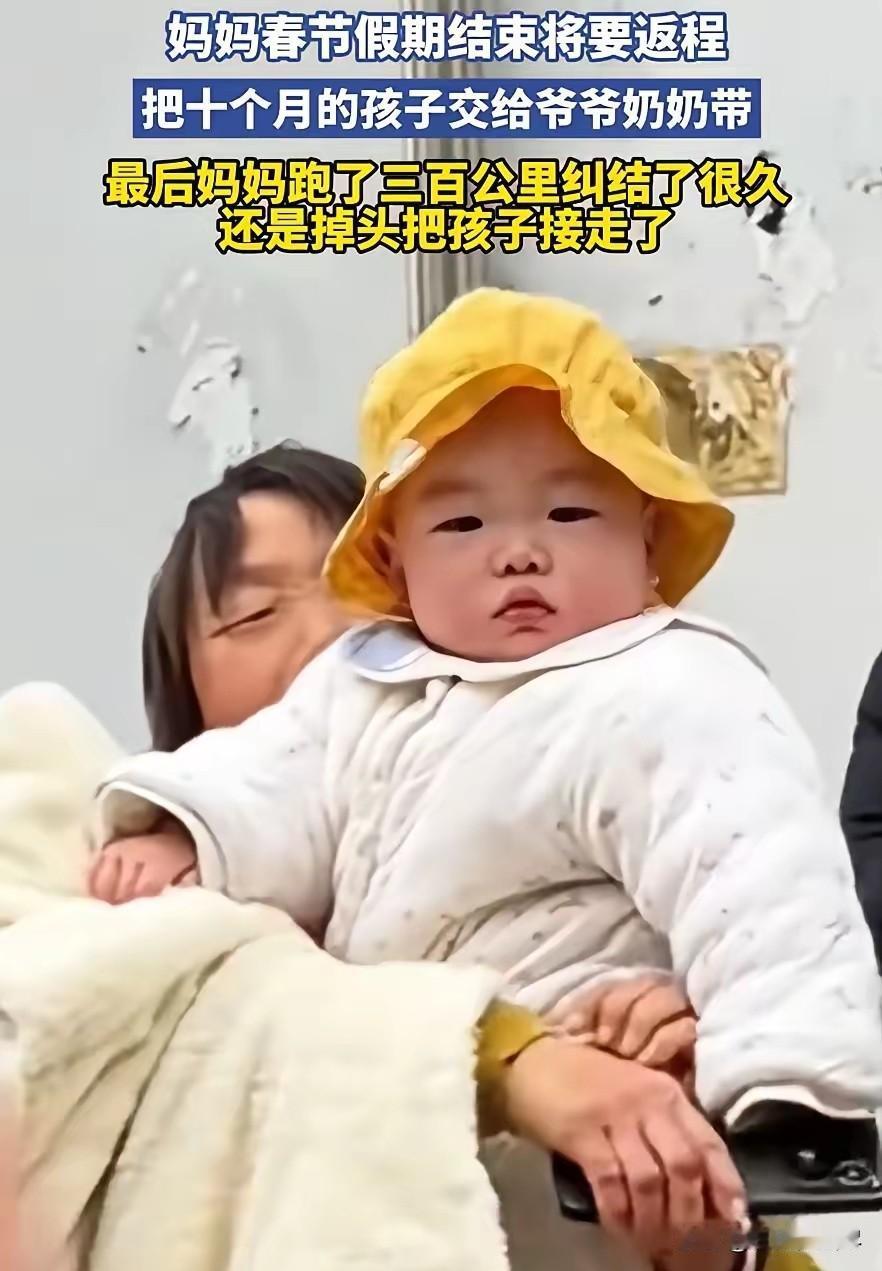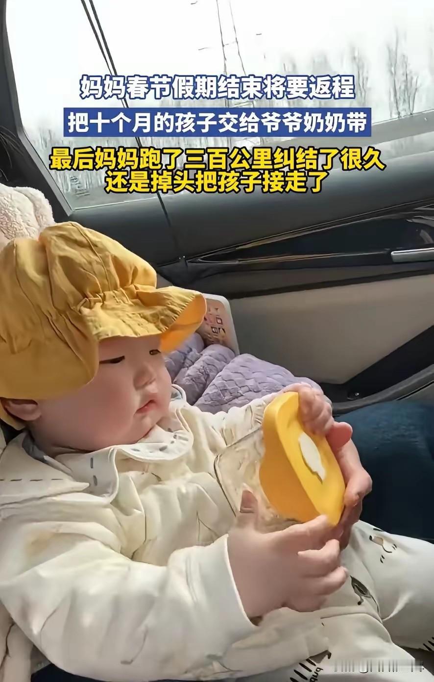 可怜天下父母心!江苏,女子返程前把10个月的孩子留给了老家的爷爷奶奶,可车子开走了300公里,女子始终放不下心,最终还是选择掉头接回孩子,再苦再累还是决定自己带。网友:这是对的! 2026年春节返程高峰,江苏一位年轻妈妈的行车轨迹,藏尽了为人父母的牵挂与不舍。假期结束后,她和家人收拾好行李,准备返回工作城市生活,临行前反复斟酌后,决定将年仅10个月的宝宝留在老家,交由孩子的爷爷奶奶照料。 做出这个选择并非一时冲动,夫妻俩考虑到工作节奏紧张、居住空间有限,日常兼顾上班与照料婴儿分身乏术,老家环境安稳、老人时间充裕,能给孩子更细致的起居照顾,权衡再三后,才狠下心暂时与孩子分离。 出发前的几个小时里,妈妈一遍遍给孩子整理衣物、奶瓶、辅食工具,把常用物品分门别类打包好,反复叮嘱老人喂养与护理的细节,目光始终停留在孩子熟睡的小脸上,舍不得移开视线。 孩子尚在襁褓,懵懂不知离别,安稳依偎在家人怀里,偶尔发出细碎的哼唧声,每一个小动作都揪着妈妈的心。 车门关闭的瞬间,她强忍着不舍,转头看向窗外,不敢再回头看院门口挥手的老人与怀里的孩子,生怕多看一眼就会动摇离开的决心。 车辆驶离村庄,驶入主干道,一路向着目的地前行,起初的几十公里里,妈妈努力平复情绪,试图用工作与生活规划转移注意力,可心底的空落感却越来越强烈。 随着距离老家越来越远,脑海里不断浮现出孩子的模样,担心孩子睡醒找不到妈妈会哭闹,担心辅食不合口味不肯进食,担心夜里惊醒没有熟悉的怀抱安抚, 各种细碎的担忧交织在一起,让她全程坐立难安,指尖反复攥紧又松开,情绪始终无法平静。 车辆匀速行驶,里程数不断攀升,当行驶里程达到300公里时,离家的距离已经足够遥远,妈妈心底的牵挂彻底压过了理性的考量。 这300公里的路程,她没有一刻安心,耳边仿佛总能听到孩子的哭声,眼前反复闪过孩子依偎在身边的画面,分离带来的焦虑与愧疚,让她再也无法继续前行。 没有丝毫犹豫,她当即决定让车辆掉头,沿着原路折返,哪怕多耗费时间与路费,哪怕往后的日子要兼顾工作与带娃加倍辛苦,也不想再和年幼的孩子分开。 返程途中,她的心情从焦虑不安慢慢变得踏实,每靠近老家一公里,心底的慌乱就减少一分。 重新回到老家门口,看到爷爷奶奶抱着孩子站在院中,孩子依旧懵懂可爱,她快步上前将孩子紧紧抱在怀里,感受着怀里小小的身躯带来的真实温度,所有的纠结与不舍都化作安稳。 夫妻俩简单收拾好孩子的行李,没有过多耽搁,再次踏上前往工作城市的路途,这一次,小小的宝宝安稳躺在身边,车厢里多了一份柔软的牵绊,路途再远也充满暖意。 做出亲自带娃的决定后,夫妻俩清晰知晓未来会面临更多琐碎与疲惫,白天奔波工作,夜里照料孩子起居,没有足够的休息时间,生活压力也会随之增加, 但即便如此,他们依旧坚定选择把孩子带在身边,不愿错过孩子成长的每一个瞬间,不想让年幼的孩子经历分离的不安。 没有华丽的誓言,没有刻意的煽情,只是普通父母最朴素的选择,用最直接的行动,守护着孩子成长的朝夕,把陪伴放在比轻松生活更重要的位置。 平凡的出行与折返,300公里的往返路程,丈量出的是父母对孩子割舍不断的亲情,也道出了无数在外打拼父母的心声,比起暂时的安逸,陪伴在孩子身边,才是内心最笃定的选择。 对此,你们有什么看法,欢迎评论留言~