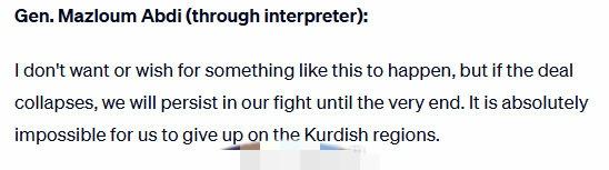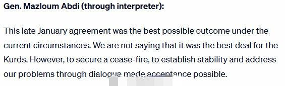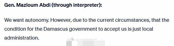 叙利亚库尔德武装总司令马兹卢姆.阿卜迪还是想让库尔德人自治,近来他接受媒体采访,