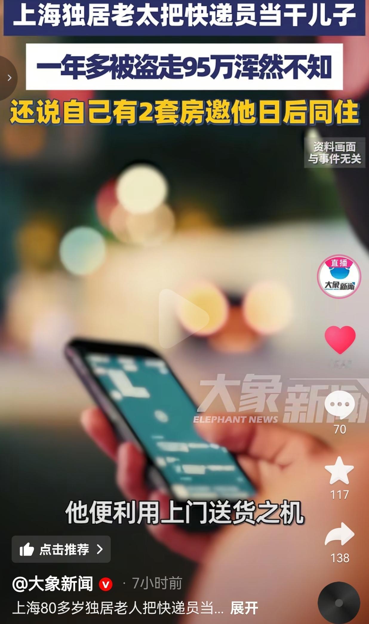 我把你当亲人,你却把我当提款机?上海一位80多岁的独居老太太,儿女常年不在身边,