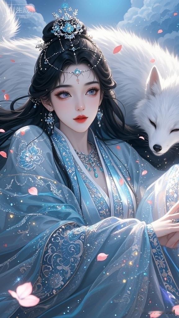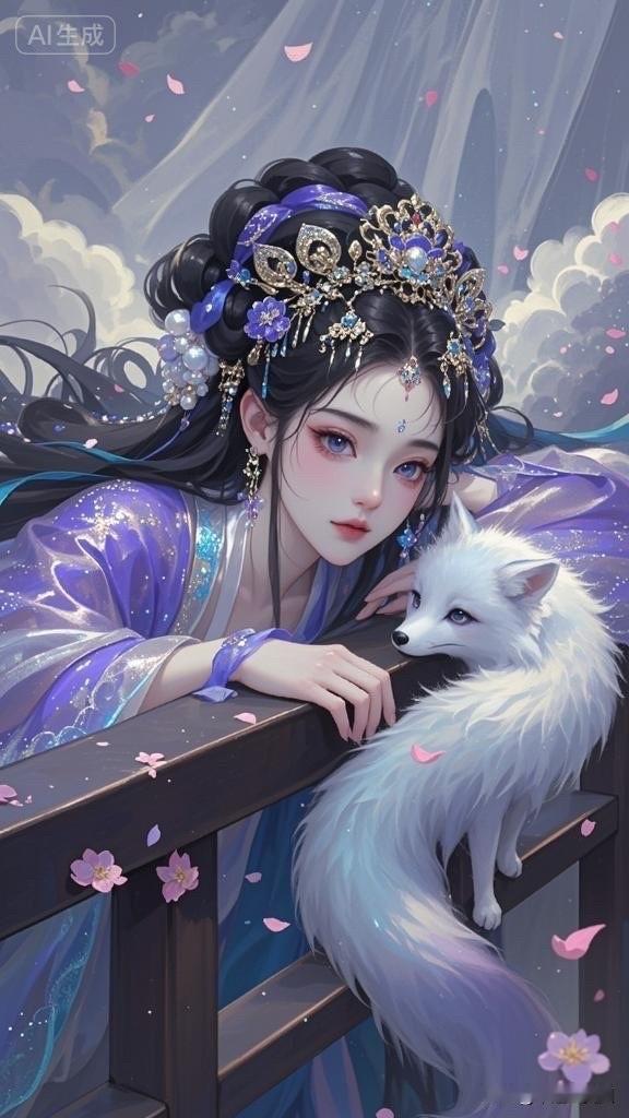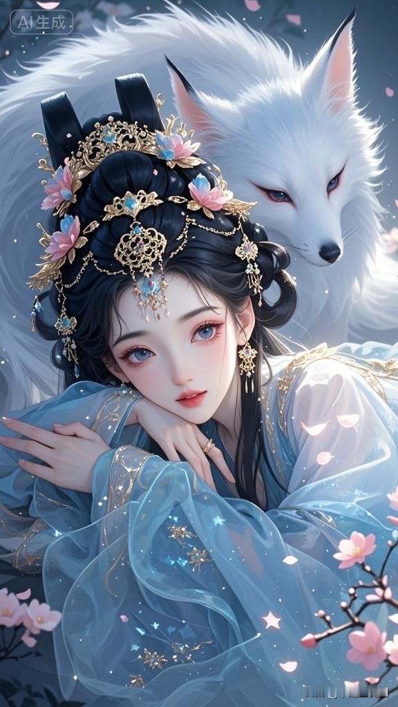 梦幻古风少女与白狐相依,唯美如画