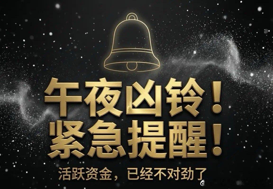 都睡了吗?这条我必须现在发,午夜凶铃式提醒!今晚复盘再看资金,越看越不对劲。活跃资金指数,已经出现隐蔽式跳水。表面平静,底下资金在悄悄撤退。指数还能撑,但资金不骗人。主力先走,散户后知后觉。等明天开盘再反应,往往就慢一步。我不吓谁,只是把我看到的真相说出来。信我的,今晚把风险想清楚;不信的,明天盘面会给答案。不荐股,只讲资金逻辑。醒着的,留个言,让我知道谁在熬夜看盘。