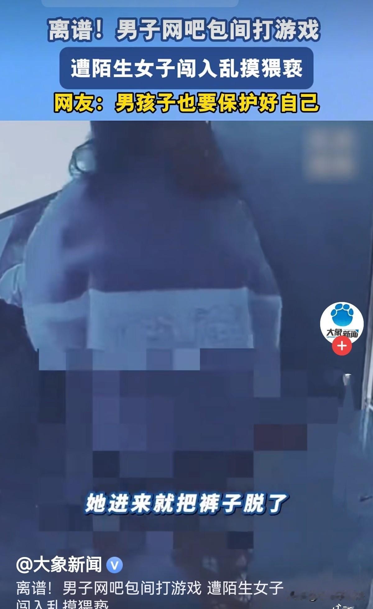 “细思极恐!”湖南岳阳,一女子突然进入一网吧包厢,正在聚精会神玩游戏的男子并未注意她,谁知,女子把裤子褪了下去,上前搂抱男子,并开始在他身上乱摸,男子吓得赶紧起身躲开,可女子不依不饶与他纠缠,男子惊恐大叫:救命!网吧工作人员这才感觉不对劲,过来帮忙控制住女子。他们说:刚开始以为是情侣之间的争吵,不好出面阻止。男子已报警!网友:如一个女人白白给你便宜占,最好不要占,因天下没有免费的晚餐,代价会很大! 2月24日下午,一家网吧的包间里,发生了一件让在场所有人都始料未及的荒唐事。 一名年轻男子正沉浸在游戏里,耳机一戴、屏幕紧盯,指尖在键盘上飞快敲击,完全没料到一场突如其来的骚扰正朝他袭来。 包间门没锁,只是虚掩着。突然“哐当”一声,门被猛地推开,一个陌生女子径直走了进来。 男子当时正打团战,注意力全在画面上,只当是有人走错包间,压根没抬头。 可接下来的举动,让旁边路过的人都看傻了眼,女子站在他身边,二话不说就开始脱裤子,动作又快又突兀。 男子依旧没察觉,还在跟队友沟通战术,整个人完全陷在游戏节奏里。 女子褪下裤子往男子身上靠,大概过了十几秒,女子提上裤子转身走出包间。 没过一会儿又搬了一把椅子回来,直接把椅子紧挨着男子的电竞椅放下,一屁股坐了下来。 紧接着,她把腿往男子身上搭,伸手就去撕扯男子的衣服,开始在他身上乱摸。 男子这才感觉到不对劲,一股陌生的触感贴着胳膊和大腿,他猛地摘下耳机回头,眼前的景象让他瞬间懵了:一个完全不认识的女人,紧贴着自己,手脚都不老实。 他第一反应是起身躲开,可刚撑着椅子站起来,就被女子死死拽住胳膊,力道大得让他挣不脱。 女子一边拽着他,一边继续伸手乱摸,嘴里还说着胡话。 男子又怕又慌,长这么大从没遇过这种事,脑子一片空白,只想赶紧挣脱。 他拼命往后缩,可包间空间小,躲无可躲,女子就像黏上来一样,怎么甩都甩不开。 恐惧压过了慌乱,男子扯开嗓子大喊:救命!救命啊!我不认识她! 这几声呼救划破了网吧的喧闹,旁边几位的顾客听见动静,探头一看觉得不对劲,赶紧跑去叫网管和工作人员。 网吧员工一开始赶到包间门口,看见两人拉扯的样子,还误以为是小情侣闹别扭,想着私人纠纷不好插手,就在门口观望了几秒。 可越看越不对:男生满脸惊恐、拼命挣扎,女生举止反常、强行纠缠,完全不是情侣打闹的样子。 这会男子的朋友们听到叫声,也跑了过来,看到这种场面也惊愕不已,网吧工作人员与其朋友合力把女子拉开,死死按住她的手脚,才彻底控制住局面。 直到被人拉开,女子还在挣扎,嘴里依旧不清不楚,看得在场的人又气愤又费解。 惊魂未定的男子浑身发抖,手抖得连手机都拿不稳。 他缓了好一会儿,才在朋友和工作人员的陪同下,拿出手机拨打110报警,把自己遭遇的猥亵过程一五一十告诉民警。 网吧方面也调出监控,配合警方固定证据,把现场情况完整还原。 目前,警方已经介入调查,涉事女子的行为也在依法处理。 网吧回应,该女子持续骚扰其他玩家,后续会加强巡查、优化包厢安防,给顾客更安全的上网环境。 员工承认刚开始因经验误判,延误了干预! 《治安管理处罚法》第44条:猥亵他人的,或者在公共场所故意裸露身体,情节恶劣的,处5日以上10日以下拘留;猥亵智力残疾人、精神病人、不满14周岁的人或者有其他严重情节的,处10日以上15日以下拘留。 女子未经许可闯入包间,进门脱裤、搬椅紧贴、将腿放于男子身上、强行拽住并乱摸,全程违背男子意志,具有明显性意味与侮辱性,侵犯男子人格尊严与性自主权。 法律对猥亵受害人不分性别,男性同样受保护。 这件事很快在网上传开,网友们一边心疼受害男生,一边纷纷感慨:原来不光女生要保护自己,男孩子在外也一样危险。 有人说,女的这种,很可能是受刺激,比如分手或者突然发现自己有性病艾滋病这类刺激,细思极恐! 有人说,所以突然送上门的真不敢,平常天天花心思去追都行,突然陌生女人这样还真是吓人! 还有人说,男孩子在外面也要好好保护自己,现在特别担心我的两个帅儿子!现在女孩子太奔放了! 不管是公共场所还是私密一点的包间,只要感觉不对劲,一定要第一时间呼救、求助,别因为不好意思就忍气吞声。 对此您怎么看?