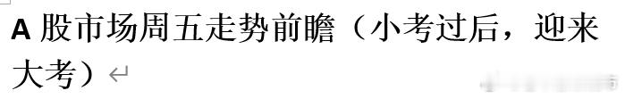 A股市场周五走势前瞻(小考过后,迎来大考)