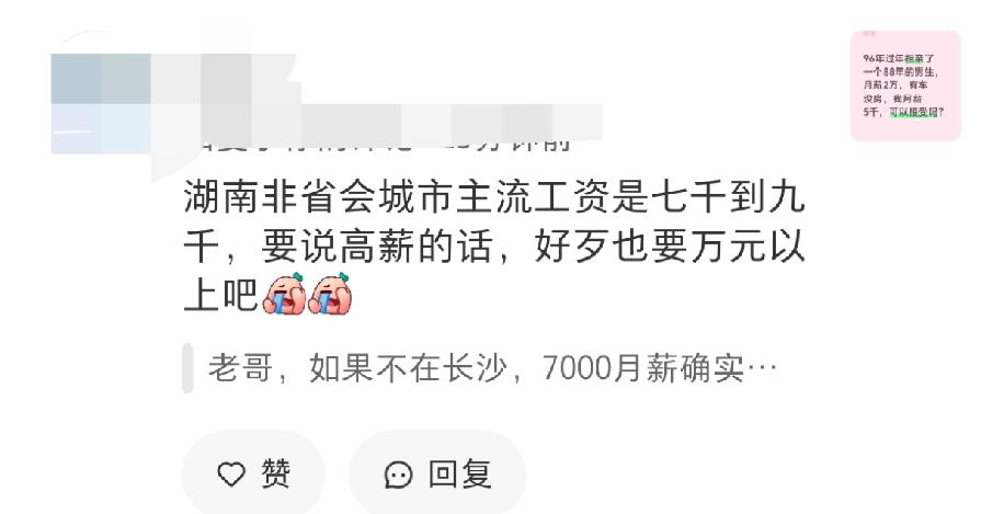 在湖南县城月薪七千块,到底算不算高薪?身边有人拿着这个工资,反倒被人看不起,说这根本算不上高薪,还说湖南非省会的城市,大家的主流工资都在七千到九千块。这话听着实在诧异,明明在湖南的小县城里,大部分人的月薪也就三千到四千块,这才是最普遍的收入水平。现在在县城能拿到七千块的月薪,已经比身边不少人都高了,就算是在省会长沙,也有一大群上班族的月薪达不到七千块,真不知道为什么会有人觉得县城七千块的工资不算高,也想问问湖南的朋友们,非省会城市的主流工资真的能到七千到九千块吗?