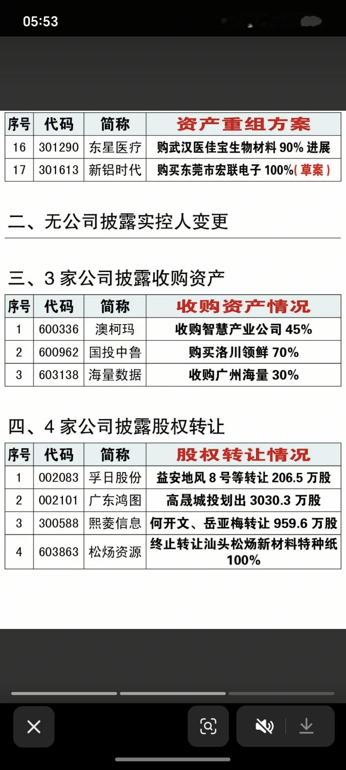 2.27周五 最新:资产重组、股权转让、实控人变更公告! 17家公司披露资产重组,4家公司股权转让、3家公司收购资产、1家出售资产 资产重组股,特别是与母公司资产注入或与国资背景重组的,值得关注。