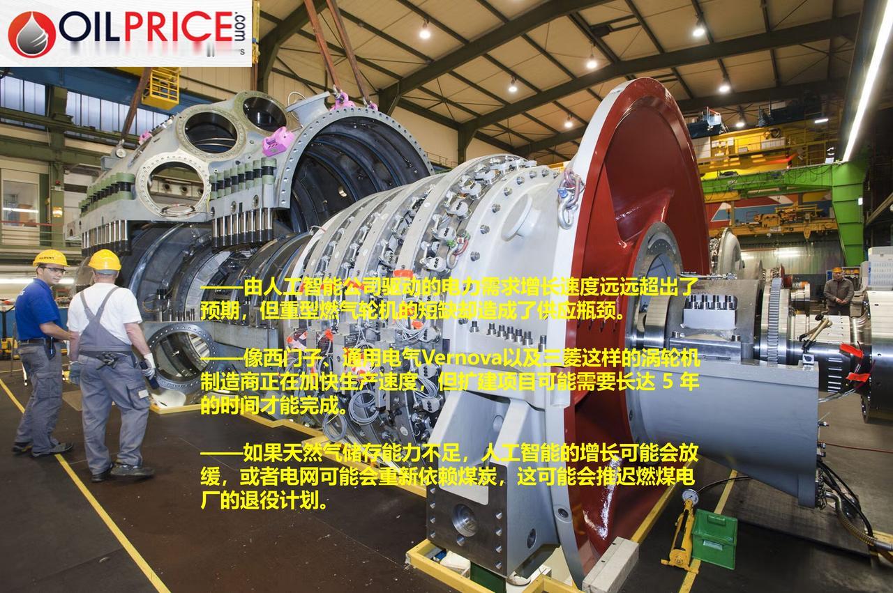 人工智能驱动用电需求猛增,而燃气轮机却严重短缺 全球主要能源消费地区电力需求的激增,促使对可靠电力供应的需求也大幅上升。这一增长出乎预料。现有的燃气轮机数量不足以保障这种供应。这意味着能源转型进程要么得放缓,要么电网就得更多地依赖煤炭。 近年来,天然气被宣传为一种介于煤炭和石油、风能和太阳能之间的“过渡性燃料”。一方面,它被视为从煤炭向石油转型的过渡能源;另一方面,它又被视为从风能和太阳能向其他能源转型的过渡能源。当人们逐渐明白“过渡性燃料”实际上指的是其自身这种低排放的基荷发电模式时,天然气便成为了环保人士攻击的对象,以至于有人声称其对大气的危害甚至比煤炭还要大。随后便出现了人工智能竞赛。 随着大型科技巨头纷纷加快提升其人工智能能力和应用的进程,对电力的需求急剧上升。然而,这一增长是在经历了数十年缓慢增长甚至停滞之后出现的,这从燃气轮机制造商产量的停滞不前中可见一斑。如今,他们不得不以极快的速度大幅增加电力供应。与此同时,那些电力需求极度旺盛的用户不得不寻找替代方案——包括重新利用的喷气式发动机。 西门子能源公司是全球三大燃气轮机制造商之一。本月早些时候,该公司公布其燃气服务业务在本季度的订单量创下历史新高,积压订单总计达 102 台新燃气轮机。其中,多达 40%的新订单来自美国,另有 35%来自欧洲。此报告是在西门子宣布将投资 10 亿美元用于电网设备生产之后发布的。 另一家大型涡轮机制造商通用Vernova公司也将投入 6 亿美元用于扩大涡轮机生产产能,其年度目标是生产多达 80 台重型涡轮机,总发电量可达约 20 吉瓦。该公司一年前就公布了这些计划,并表示:“这些战略投资以及由此创造的就业机会旨在帮助我们的客户满足需求翻倍的需求,同时加速美国的创新和技术发展,以增强国家的能源安全和全球竞争力。” 三菱,第三家大型涡轮机制造商,去年表示将扩大其涡轮机的生产规模,以应对不断增长的需求。该公司的首席执行官指出:“我们原本计划将产能提高 30%,但这仍不足以满足不断增长的需求。完成这些订单是我们的首要任务。” 然而,所有这些计划都需要时间才能实现,而工业用电用户现在就需要电力,所以他们正在将喷气式发动机改造成燃气轮机。《华尔街日报》本月早些时候报道称,将喷气式发动机涡轮改造成发电涡轮这一业务正在迅速发展,吸引了众多投资者的兴趣。其中一家进行这种转换的公司——FTAI 航空公司,自宣布这一新业务以来,其股价已上涨了 42%。该公司表示,只需 30 至 45 天的时间就能将一架波音 737 喷气式发动机改造成发电用的燃气轮机。 对于这些人工智能竞赛者来说,时间至关重要。大型涡轮机制造商的等待名单已经排了多年。但他们现在就需要电力,因为如果发展势头减弱,投资者就会纷纷撤离,或者至少在人工智能领域内,这种看法似乎很普遍。不过,一些分析师认为,涡轮机供应的限制可能会对这种发展势头产生影响。 伍德麦肯兹公司美洲地区副主席埃德·克罗克斯在近期的一篇评论文章中写道:“在预计对先进人工智能发展至关重要的未来五年(即到 2030 年)期间,燃气发电厂将为满足美国日益增长的电力需求做出重大贡献。” “但设备的供应情况,尤其是重型燃气轮机的供应,仍可能成为电力供应增长的制约因素,尽管制造商正在新增产能。”克罗克斯还表示。 他指出,目前新燃气轮机的交付周期为五年。对于人工智能数据中心的运营商来说,这个时间显然太长了。将飞机喷气发动机改造为燃气轮机并不能完全替代前者,因为其容量要小得多。这意味着要么大型科技公司在人工智能领域失去发展势头,要么它们现在就得从其他地方获取电力。 比如说,“其他地方”可能采用的是太阳能发电,至少一些支持向可再生能源转型的专家是这么认为的。然而,即便这些专家也承认,这一选择同样需要投入大量资金用于电池以及备用发电设施的建设。为了省去中间环节,可以说,科技公司可能会直接选择除天然气之外最易获取的基荷电力供应:煤炭。而据伍德麦肯兹公司称,这意味着有关关闭燃煤发电厂的计划很可能会被修改。 即便有这么多的常规发电量,这些人工智能竞赛者可能仍得调整自己的发展计划,因为电力供应将无法满足需求,原因就在于我们所生活的这个世界所遵循的物理法则。而这也意味着,这场竞赛的势头必然会有所减缓,只是时间早晚的问题。