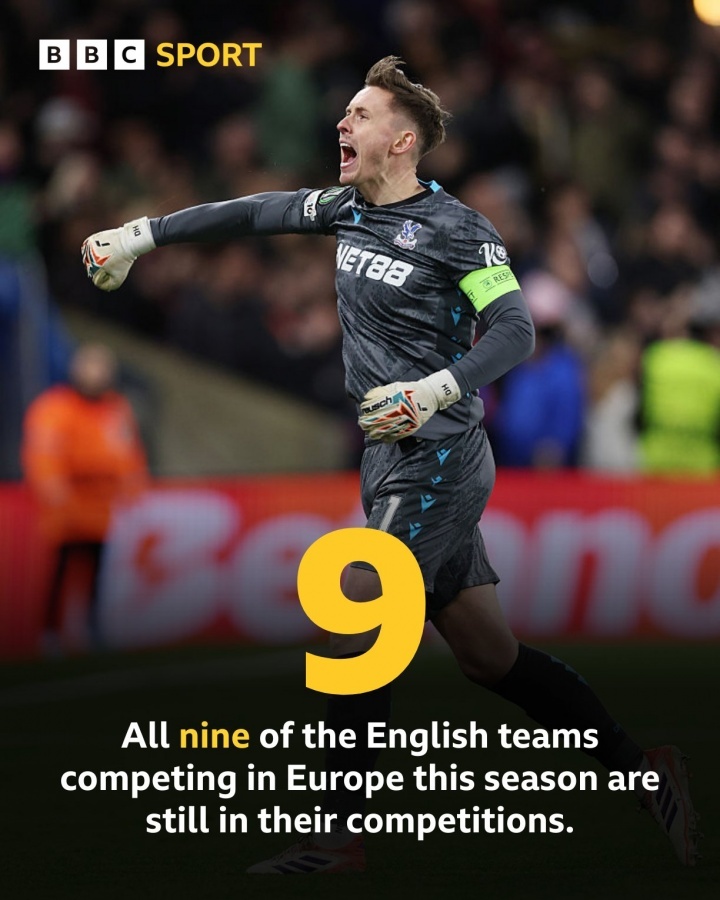 诺丁汉森林和水晶宫均分别晋级欧联杯16强和欧协联16强,本赛季英超9队参加欧战全部晋级淘汰赛。