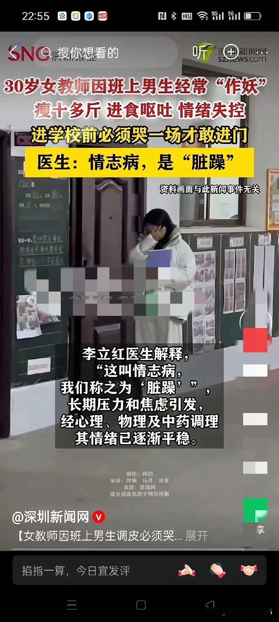 浙江一位女教师,因班上一男生长期扰乱课堂、屡教不改,陷入极度职业失控感,开学后暴瘦十多斤、进食呕吐,每日到校门前必须大哭一场才能走进校园。 她被诊断为因情绪失调引发的“情志病”,需药物、针灸与心理疏导综合治疗。 这位教师的崩溃,不是单纯的抗压能力弱,而是一根被层层压力磨断的弦。 教师如今活在层层枷锁里,管严了怕家长投诉、怕触碰惩戒红线,管松了要担教学失职的责任,像站在钢丝上走平衡木,左右都是难。 一边是无休无止的行政事务、成绩排名的紧箍咒,一边是家长的高期待、社会的苛责眼光,连基本的职业尊严都在慢慢流失。 当学生出现行为问题,本应是家校合力解决,最后却成了教师一个人的战斗,硬生生把教书育人的初心,熬成了身心俱疲的内耗。 大家总说“师者如灯”,却忘了灯芯也会燃尽,忘了点灯人也需要被照亮。 当教师要靠痛哭才能踏进校门,当17.5%的教师都检出心理健康问题,这早已不是个人的心理问题,而是教育系统的集体感冒。 口头上的尊师重教轻飘飘,不如给教师松松绑,少点非教学的繁文缛节,给他们合理的惩戒权,让家校站在同一战线,让他们不用再带着心理枷锁站上讲台。 毕竟,只有心里有光的老师,才能教出眼里有光的孩子;只有被善待的教育者,才能撑起有温度的教育。