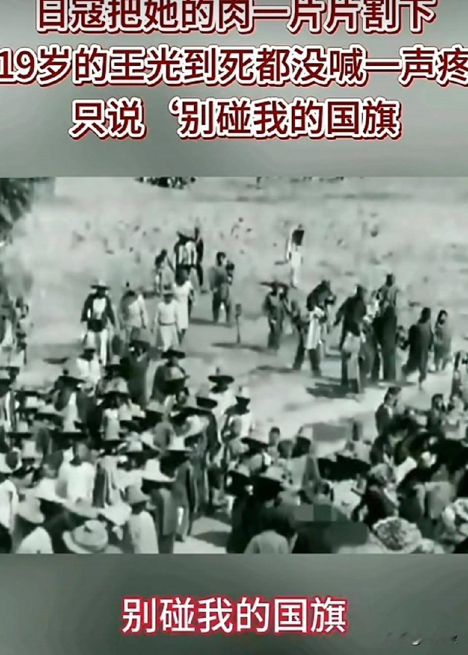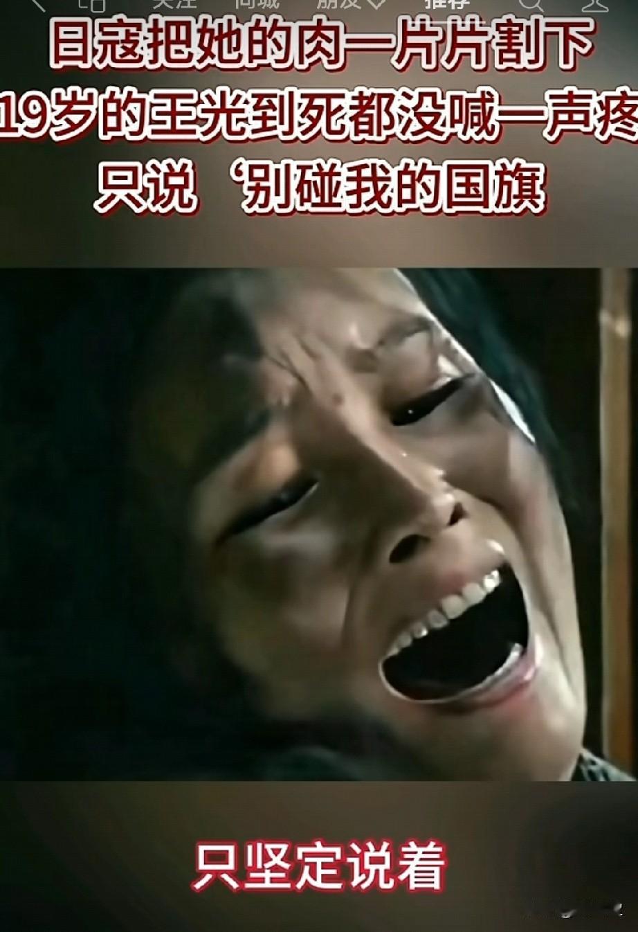 19岁抗日女英雄王光,宁死不辱,以血肉之躯守护国旗,震撼人心! 日寇把她的肉一片片割下,19岁的王光到死都没喊疼,只说“别碰我的国旗” 🇨🇳“别碰我的国旗”——这六个字,是19岁的王光用生命喊出的誓言。 希望转发,能让更多人记住王光的名字!