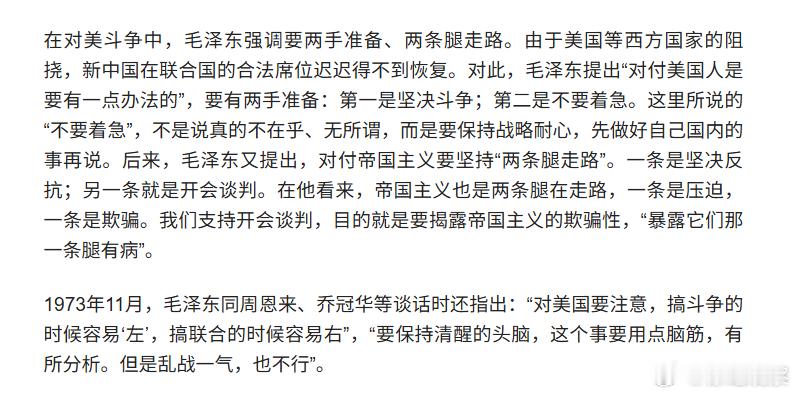 美国贸易代表称对中国不加关税 毛主席早就说得很多清楚。如何和美国打交道,如何与美国博弈,什么时候可以妥协,什么时候要坚决斗争。