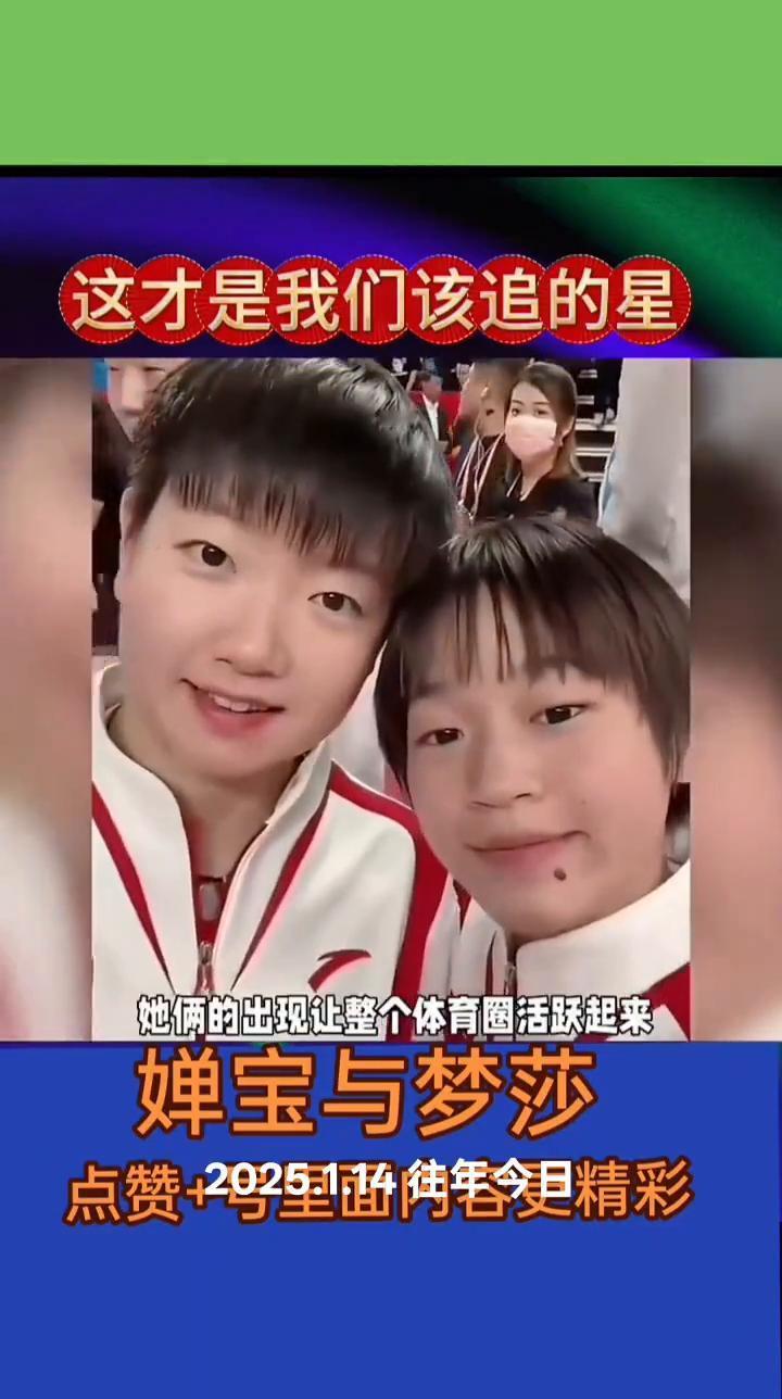 婵宝与梦莎。 全红蝉平常对什么都一副淡然的样子,可是见到莎莎也是绷不住了,喜欢的不得了。小姐俩不仅很可爱,而且还很强大。她俩的出现让整个体育圈活跃起来,莎莎在婵宝面前真像个大姐姐。 体育界两个最可爱的妹宝,国乒和跳水年纪最小的两个台柱子在各自的领域发光发热。两个都是伟大的运动员,这才是国人该追的人。小小年纪就为国争光,是全民都爱的世界冠军。