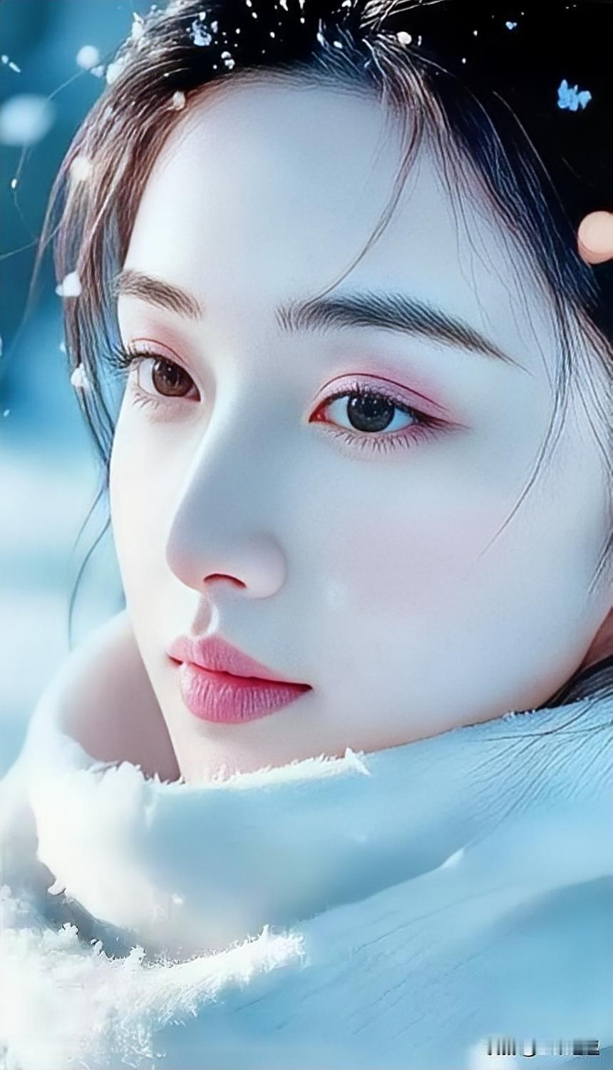 冬日仙境中的温柔少女,雪中静谧的美丽。