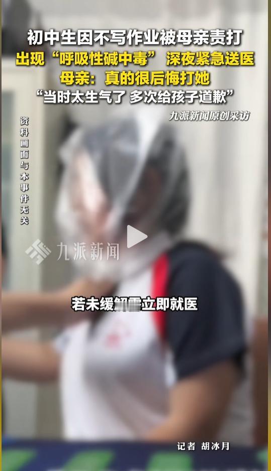 “悲剧还是发生了!”近日,河南南阳,一初三女生因为不愿意写作业被母亲打了几下。随后她就坐在床边伤心地哭了起来。过了一会儿,女生的妈妈发现她呼吸很用力,仔细一看四肢不动,嘴唇还发紫,于是赶忙打了120。网友:这届孩子这么脆的么? 小的时候调皮不写作业,没少挨父母的打,长大了也用这一套来教育自己的孩子。不过,现在的孩子,学习压力更大,情绪也更容易崩溃。 据媒体2月25日报道,刘女士的女儿今年上初三了,为了孩子的学习,她多次催促孩子写作业。事发当晚,她多次催促无果,气的实在受不了了,就打了孩子几下。没想到打完孩子就跑到床上哭了起来。 过了一会,刘女士感觉女儿不太对劲,赶紧过去查看。她发现女儿的呼吸非常急促,嘴唇发紫,四肢也不动了。刘女士见状马上拨打了急救电话。 救护车赶到后,医护人员说她女儿这是呼吸性碱中毒,先用塑料袋套住了她女儿的头部,来缓解呼吸,随后送往了医院。在医院经过输氧治疗后,刘女士的女儿也恢复了健康。 医生提醒,这种症状主要是由于情绪波动较大引起的。当发现孩子出现这种症状时,可先用口罩、纸袋等捂住孩子口鼻,指导其深吸气再慢呼,如果症状没有缓解,就要立即送往医院进行治疗。 现在的孩子,接受的信息太多,学业压力也大,家长朋友们一定要多关注孩子的情绪健康。多了解,多谈心,不要急躁,少使用暴力,让孩子能够健康快乐的成长。 信息来源:《2月24日,河南南阳,