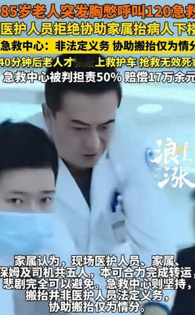 山西阳泉,一85岁老人发病,虽然离医院就4分钟的路,但家人怕耽误病情还是叫了120,不料,医护人员拒绝帮家属把老人抬下5楼。导致老人40分钟才上救护车,老人因耽误了抢救,不幸离世,而急救中心却说:我们没义务帮着抬人,帮是情分,不帮是本分。家属愤怒的起诉到法院,一审:急救中心承担50 %责任,赔偿家属17万,急救中心上诉,二审判决出乎意料。 清晨六点多,天还没完全亮,厨房里还飘着昨晚煲汤的余温。陈奶奶突然捂着胸口,从沙发上慢慢滑坐下来,脸色煞白,额头冷汗直冒。 “胸口闷……喘不上气……”她声音发颤。 女儿陈女士一下子慌了神。母亲患有高血压和冠心病多年,平时按时吃药还算稳定,可这种急喘的情况从没这么严重过。 她颤抖着手拨通了120,一边报地址,一边几乎是哭着说:“老人心脏不好,五楼,没有电梯,你们快点!” 小区到医院开车不过四分钟,可她不敢自己送。她怕万一途中出事,错过黄金抢救时间。 十几分钟后,救护车到了楼下。 可谁也没想到,真正的噩梦才刚开始。 医护人员上楼查看后,简单测了血压,确认情况危急。但当陈女士焦急地说“快帮忙抬下去吧”,对方却迟疑了。 “我们没有抬人的义务。”其中一名工作人员冷冷地说,“没有担架电梯,也没有专业搬运条件,风险太大。” 陈女士愣住了:“可她现在这个样子,怎么自己下楼?我们家就我一个人!” 对方回答得更直接:“帮是情分,不帮是本分。我们只负责院前急救。” 那一刻,陈女士只觉得耳朵嗡的一声。她跪在地上,拉着医生的袖子哀求:“求求你们,我妈心脏不好,她等不起啊!” 可医护人员坚持让家属自行想办法。陈女士只好冲出楼道,挨家挨户敲门求助。 邻居们陆续赶来,有人拿来木板,有人帮着扶。五层楼,窄窄的楼道,几个人小心翼翼地往下挪。陈奶奶在担架上呼吸越来越急促,嘴唇发紫。 整整四十分钟,才把人抬到楼下。 上车后,医护人员开始实施抢救。但到医院时,陈奶奶已出现严重心律失常,最终抢救无效。 医院的走廊里,陈女士瘫坐在地,手里还攥着母亲那双冰凉的手。她脑子里反复回荡着那句话——“帮是情分,不帮是本分。” 她不甘心。 办完丧事后,陈女士带着录音、邻居证言和小区监控,找到急救中心讨说法。 接待室里,工作人员语气冷淡:“我们按流程出诊,现场评估风险,没有违规。” “那四十分钟呢?”陈女士声音发抖,“你们明知道她是冠心病急症,黄金抢救时间就是分秒必争!” 对方摊手:“抬人属于家属责任。我们没有额外搬运人员配置。” 陈女士拍着桌子站起来:“她是人命!不是流程里的一个编号!如果当时你们帮忙,哪怕早十分钟,也许她就能活下来!” 她的声音在大厅里回荡,围观的人越来越多。有人低声议论,也有人摇头叹气。 急救中心却始终坚持一句话:“我们没有义务。” 那一刻,陈女士决定起诉。 法庭上,她几度哽咽。她讲述母亲那天清晨的样子,讲自己跪地求人的无助,讲四十分钟一分一秒的煎熬。邻居出庭作证,证实医护人员确实拒绝协助搬运。 一审判决出来时,法院认定急救中心未尽到合理注意义务,对延误救治承担50%责任,赔偿17万元。 判决宣读那天,陈女士泪流满面。她知道,钱换不回母亲,但至少法律承认了那四十分钟的分量。 然而,急救中心不服,上诉。 二审期间,陈女士几乎夜夜失眠。她反复看庭审笔录,担心判决被推翻。她一遍遍问自己:“难道生命真的不如一条内部规定重要?” 在法庭上,她的声音不再像第一次那样颤抖,而是带着压抑后的愤怒与坚定: “如果急救的意义只是把人送到医院门口,而不管人能不能活着到达,那‘急救’两个字还有什么意义?” 旁听席上有人默默抹泪。 她不是要为难谁,她只是想要一个答案——当老人危在旦夕时,医护人员是否应该尽最大努力? 走出法院那天,天空阴沉沉的。陈女士抱着母亲的遗像,轻声说:“妈,我替你问清楚。” 她知道,这场官司已经不仅仅是为了自己的母亲。她希望以后再有类似的家庭,不必在楼道里一层层往下抬人,不必在无助中听到“帮是情分,不帮是本分”这样的回答。