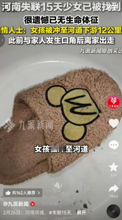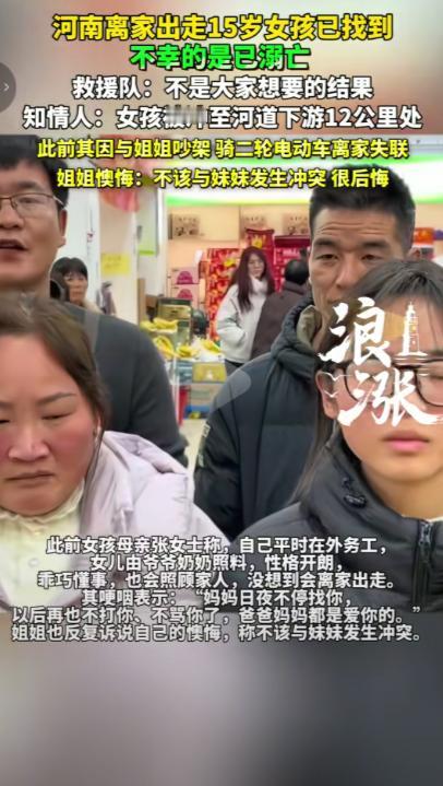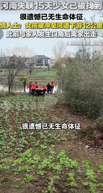 离家出走的15岁女孩樊梦辞的遗体在河里找到了,更多内情曝光,原来,她是家里的老二,姐姐大不几岁,下面还有一个弟弟,她从小是在爷爷奶奶家长大。 当那具瘦小的遗体被缓缓打捞上岸时,岸边等待的家属瞬间崩溃,哭声在河堤上久久回荡。 没人愿意相信,这个刚刚年满15岁的女孩,会以这样惨烈的方式,结束自己尚未真正开始的人生。 这个女孩叫樊梦辞,2011年出生,是家里三个孩子中的老二。 她的成长里,没有父母时刻的陪伴,从小就跟着爷爷奶奶生活,父母常年在外务工,一年到头也难得回家几次。 家里有一个双胞胎姐姐,还有一个年幼的弟弟,在这样的多子女家庭里,樊梦辞似乎一直是最不起眼的那一个——没有姐姐被寄予的期望,也没有弟弟所得到的偏爱,她习惯了懂事,习惯了迁就,习惯了把自己的情绪藏在心底。 在身边人的印象里,樊梦辞长相甜美,学习成绩也一直不错,去年9月刚转学到新的初中,还没完全适应新的环境。 她平时总是笑着,主动帮爷爷奶奶做家务,待人也温和,谁都看不出,这个看似开朗的女孩,内心藏着多少不被察觉的敏感和委屈。 15岁的年纪,正是青春期最脆弱也最叛逆的时候,而长期的被忽视,让她的心理变得格外脆弱,一点小事,就可能成为压垮她的最后一根稻草。 悲剧的发生,始于一场再普通不过的家庭争吵。 2月10号,北方的小年,家家户户都在忙着准备团圆饭,在外务工的母亲也已经回家,正在厨房里忙碌。 樊梦辞和双胞胎姐姐因为一点日常琐事吵了起来,争执不算激烈,却让积压了许久情绪的樊梦辞彻底破防。 争吵结束后,她一个人坐在沙发上掉眼泪,没有哭声,只有默默的抽泣,而忙碌的母亲,没有察觉到女儿的异常,更没有上前说一句安慰的话。 那一刻的委屈和无助,让樊梦辞做出了冲动的决定。 她没来得及换衣服,穿着拖鞋,骑着家里一辆电量已经不多的电动车,悄悄走出了家门。 家人当时并没有太在意,觉得她只是一时赌气,出去散散心,用不了多久就会回来,毕竟她平时一直很懂事,从没有过离家出走的念头。 可谁也没想到,这一走,就是永别。 直到当天晚上,樊梦辞依旧没有回家,家人才彻底慌了神,开始在周边疯狂寻找,呼喊着她的名字,却始终没有回应。 无奈之下,家人选择报警,警方调取了沿途的监控,画面里,樊梦辞骑着电动车,一路朝着丁集镇的河堤方向驶去,最后出现在河堤旁,之后便没了任何踪迹。 一场长达十几天的搜寻就此展开。 樊梦辞的父母暂停了所有工作,和亲戚朋友一起,沿着河堤、村落,一遍又一遍地排查,不放过任何一个线索。 多支救援队伍也加入进来,冒着严寒,在谷河的河道里进行拉网式搜寻,声呐设备、打捞工具轮番上阵,每一个参与搜寻的人,都在期盼着奇迹的出现。 这十几天里,无数网友看到寻人信息后,主动转发、提供线索,有人甚至专门赶到项城,帮忙一起寻找。 家属也发布了悬赏启事,期盼能有好心人带来女儿的消息,可一次次的线索核实,换来的却是一次次的失望。 樊梦辞的姐姐,每天都活在自责中,一遍又一遍地回想和妹妹争吵的画面,后悔自己当初没有让着妹妹;母亲更是整日以泪洗面,后悔自己当时没有安抚女儿,后悔平日里对女儿的疏忽和打骂。 2月26日上午10点48分,救援人员终于在谷河二桥东边的水域,找到了樊梦辞的遗体,经确认,女孩系溺水身亡。 那一刻,所有的期盼都化为泡影,所有的努力,最终只换来了一场无法挽回的悲剧。 截至目前,樊梦辞离家时所骑的电动车还没有找到,警方也在进一步处理后续事宜。 这场悲剧,从来都不是一场意外,也不是一句“孩子太脆弱”就能概括的,它藏着多子女家庭里被忽视的无奈,藏着青春期孩子不被理解的委屈,也藏着家庭教育中那些被忽略的细节。 樊梦辞的离开,给所有家庭都提了个醒。 或许我们总觉得,孩子懂事就不用多操心,总觉得忙碌赚钱就是为了孩子好,却忘了,青春期的孩子,最需要的不是物质的满足,而是被看见、被理解、被关爱。 一句简单的安慰,一次耐心的倾听,或许就能拉住那个正在走向绝望的孩子,就能避免一场无法挽回的悲剧。 今天的分享到这里就结束了,大家对此事有何看法,欢迎在评论区留言和讨论,感兴趣的可以点击头像加关注,我将每日更新优质内容,我们下期见。