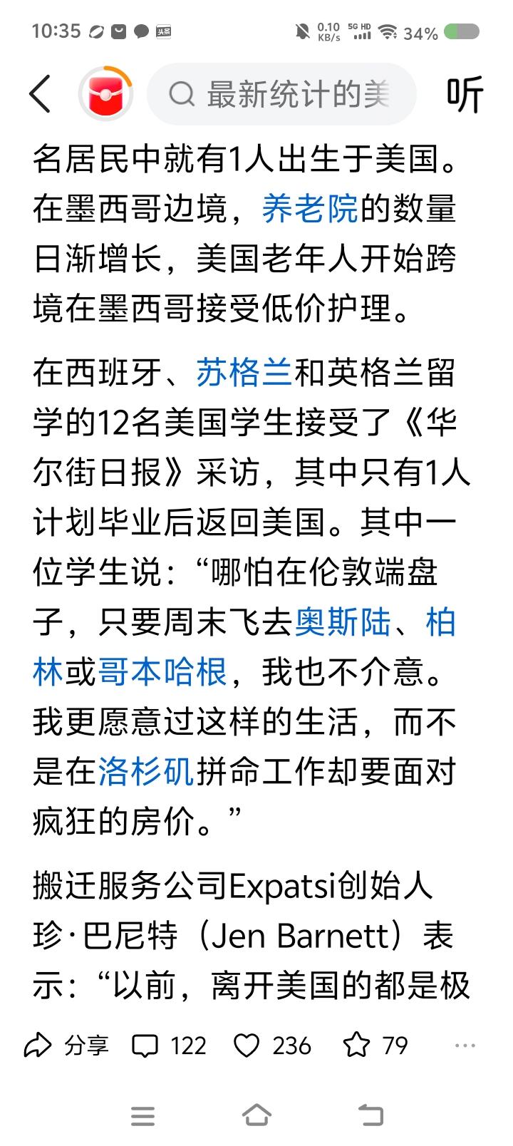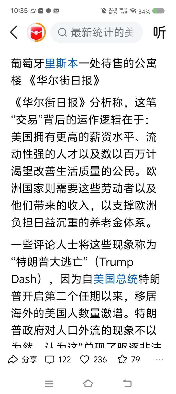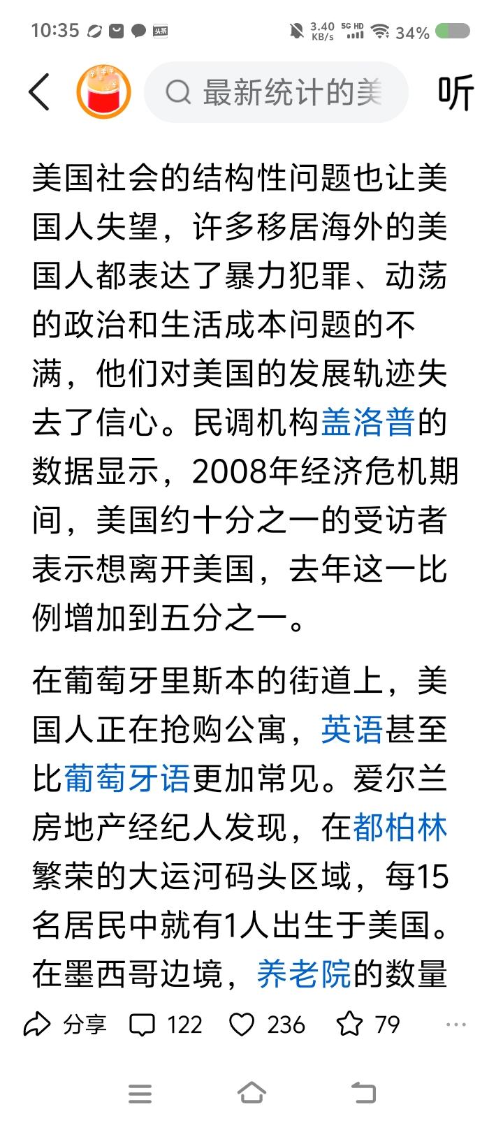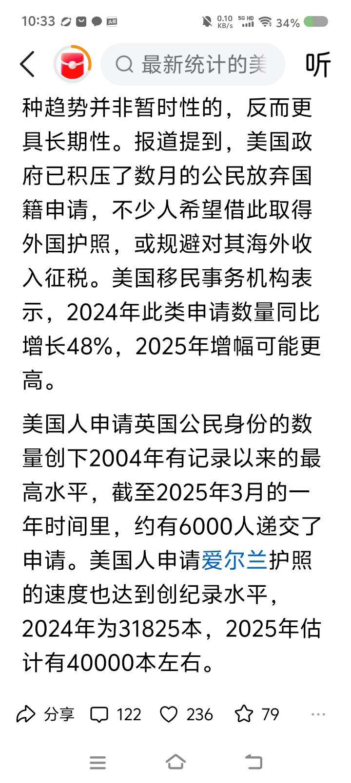 美国成为人口流失国?—— 据报道,2025年,美国人口流出数量高于流进数量。2023年,美国入境移民600万,2025年跌至270万左右。另外,美国遣返了67.5万人。欧洲成为美国离境人口的普遍选择。普通人比例增大。 点评: 原因大概有两个:一是美国的实力与吸引力下滑。二是特朗普的恐怖政策。 同样,评论区还是有人问:为什么美国驻华使馆前排队的人那么多? 你看,没劲了吧。 我没说美国不好。美国欢迎你!中国出入自由。 同样,日本也一样。日本欢迎你!中国出入自由。 但是,有个问题:出去了别给中国丢人。即使你移民了,干了丢人的事,还是有人把你当成原来国家的人。或者,你被歧视了,那个时候,你别哭着喊着找中国驻外大使馆,或者网上撒泼,找同情。 网上视频:在美国,两个中国人模样的人在街上吵架,用中文。好像一个人的车妨碍了对方,对方不依不饶。这个人说:“给你挪开不就完了吗?至于么?都是中国人,不能好好说话么?”另一个人立马更激动了:“谁是中国人?我是美国人!你是中国人,来这干什么?”对方说:“我也是美国人……” 全程中文! 如果他们都是美国人,那可太逗了!太惊悚了! 两个移民美国的华人,用中文吵架,以自己被当作中国人为耻,又把原先中国人的不好的一面向全世界展现了! 这种人,活什么劲?! 移民出去的,也有对中国友好的;中国人里,也有畜牲。移民不是考验一个人爱国与否的因素。但无论你是哪国人,都首先做一个堂堂正正的人,无愧天地良心的人,做个有人性有人味的人。 结论:无论中国人,还是美国人、日本人,还是什么地方的人,都把自己的“国”与“家”建设好,无论你在哪里。