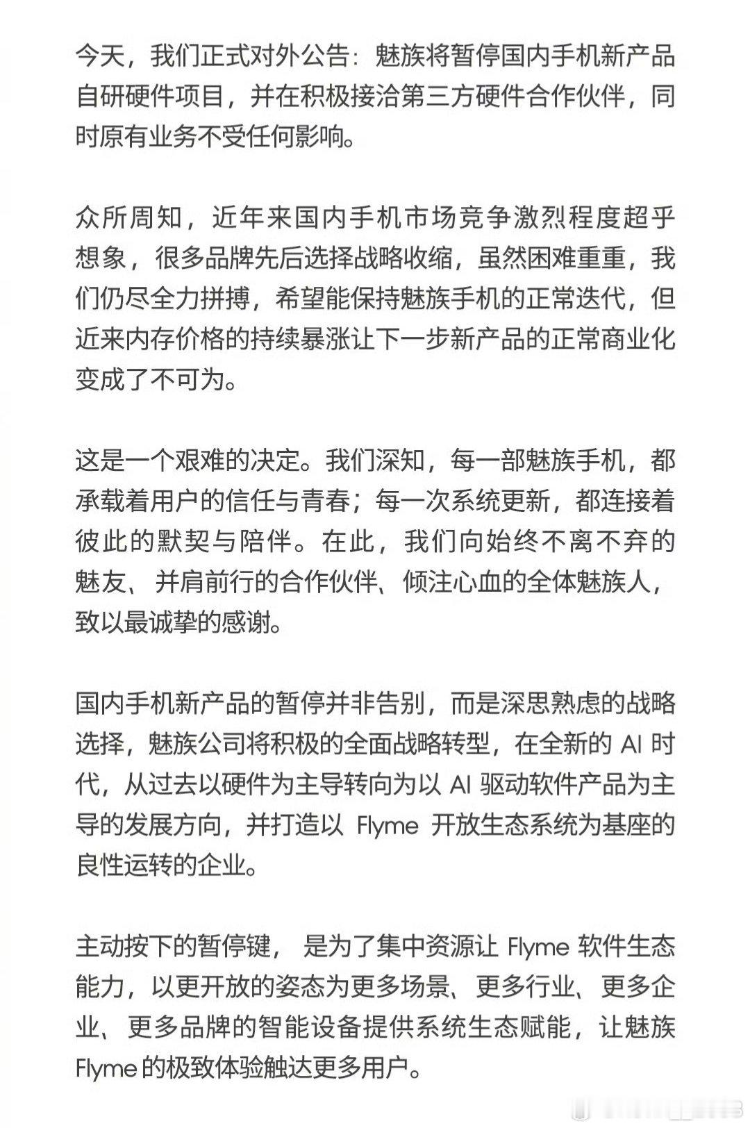 魅族暂停手机业务!开放Flyme生态说不出来的滋味。