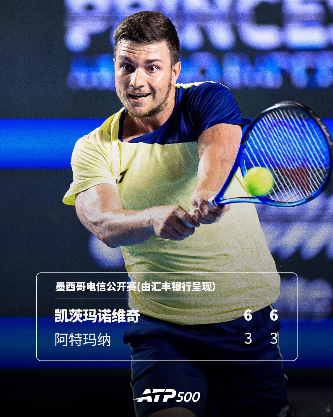 ATP500 墨西哥电信公开赛(由汇丰银行呈现)1/4决赛,凯茨玛诺维奇以6-3 6-3击败法国选手阿特玛纳,首次跻身500赛四强、职业生涯第16次闯进巡回赛四强,将与科博利争夺决赛权。