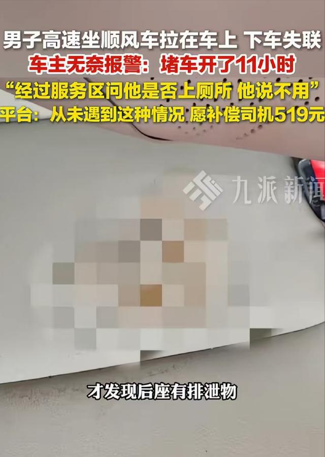 赔大了!山东一男子返程上海,路上接了一单顺风车,全程11小时,乘客付了216.3元,半路上乘客在他后座拉屎,男子以为乘客晕车吐了,乘客还不承认,男子没在意,直到回到上海,一拉开后门,男子发现后座上一摊黄黄的污渍,差点把他熏吐了! 山东一名男子,从老家返程上海,想着顺路接一单顺风车,既能分担点油费,也能图个热闹,可谁能想到,11个小时的辛苦奔波,只赚了216.3元,最后还被乘客坑得欲哭无泪。 男子老家在山东,春节过后,收拾好行李准备驾车返回上海上班,全程几百公里,开车需要十几个小时,想着路途遥远,空车跑也不划算,就顺手在顺风车平台上发布了接单信息,打算接一位顺路的乘客,多少能补贴点油费和过路费。 没过多久,就有一位乘客下了单,和男子的行程完全顺路,双方确认好时间和上车地点后,男子就按时去接了乘客。 乘客是一名中年男子,上车后没怎么说话,径直坐在了后座,男子也没多想,寒暄两句后就发动车辆,踏上了返程之路。 本来以为这只是一趟普通的顺风车行程,男子安安稳稳开着车,全程专心赶路,毕竟要开11个小时,不敢有丝毫马虎。一路上,两人几乎没有交流,后座的乘客要么闭目养神,要么低头玩手机,一切看起来都很正常。 大概行驶到半路,也就是行程过半的时候,男子突然闻到车里飘来一股奇怪的异味,不算特别浓烈,但也让人很不舒服。 他从后视镜里看了一眼后座的乘客,发现对方脸色有点不自然,还时不时扭动身体,看起来有些难受。 男子心里犯嘀咕,以为是长途坐车太劳累,乘客晕车吐了,毕竟11个小时的车程,确实容易让人不舒服。他当时忙着开车,也没来得及仔细询问,只是下意识问了一句乘客是不是不舒服,可对方却一口否认,说自己没事,只是有点闷。 听到乘客这么说,男子也没再多想,只当是自己想多了,顺手把车窗打开一点透透气,继续专心开车。他想着反正快到上海了,忍一忍就过去了,压根没往别的地方想,更没料到后座会发生让人崩溃的事。 就这样,男子一路奔波,整整开了11个小时,终于抵达了上海。等到了目的地,他停好车,先帮乘客拿了行李,看着乘客匆匆离开,也没再多留意后座的情况。 可当他转身拉开后车门,准备清理一下车内杂物时,眼前的一幕让他瞬间僵住,差点当场吐出来。 后座的座椅上,赫然留着一摊黄黄的污渍,黏糊糊的,散发着刺鼻的恶臭,顺着座椅缝隙还往下渗,连车门内侧都沾到了一些。 男子凑近一看,瞬间明白过来,刚才闻到的异味根本不是晕车呕吐,而是乘客在他后座拉屎了。 男子气得浑身发抖,自己辛辛苦苦开了11个小时的车,累得腰酸背痛,就赚了216.3元,结果好好的车被弄成这样。 他赶紧拿出手机,联系那位乘客,想问问对方到底是怎么回事,让对方给出一个说法,还要赔偿自己的洗车和座椅维修费用。 可不管他怎么打电话、发消息,对方都拒不回应,到最后甚至直接不接电话、不回消息,俨然一副耍赖的态度。男子这才意识到,对方从一开始就知道自己闯了祸,只是故意隐瞒,下车后就想彻底逃避责任。 他也试着联系了顺风车平台,反馈了这件事,希望平台能帮忙联系到乘客,协调赔偿事宜。平台已经受理了他的投诉,赔偿车主519元。 对此,你们有什么看法,欢迎评论留言~