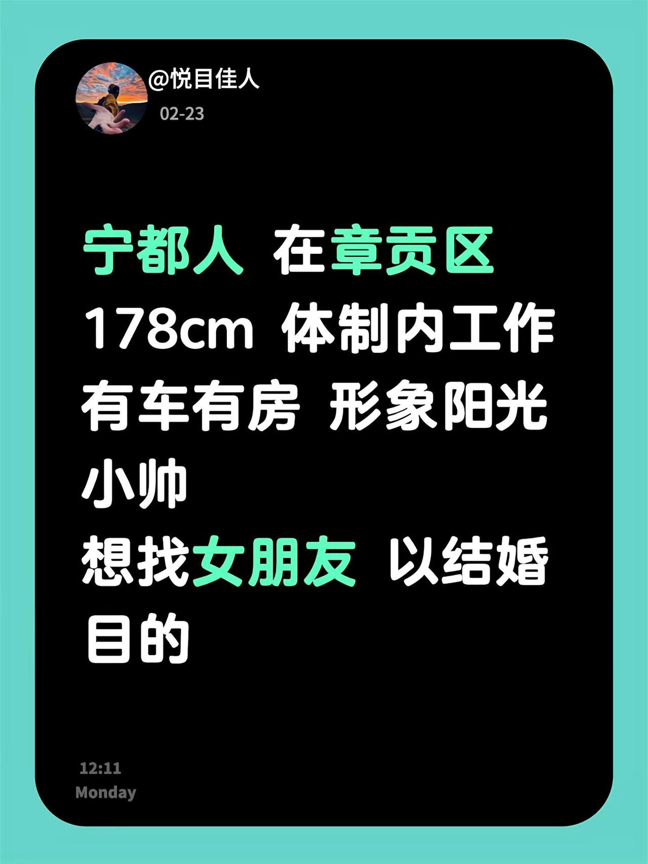 宁都人 在章贡区178cm 体制内工作有车有房 形象阳光小帅想找女朋友 以结婚目的章贡 赣州章贡区 江西宁都 章贡区