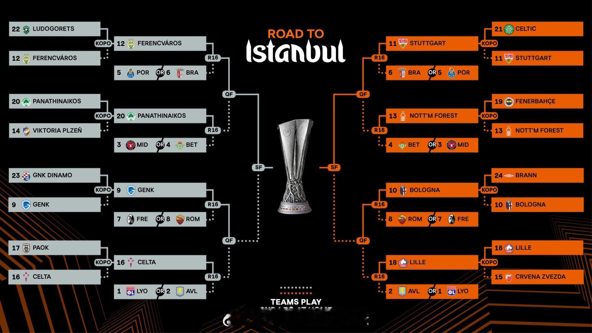 种子队:里昂、阿斯顿维拉、中日德兰、皇家贝蒂斯、波尔图、布拉加、弗赖堡、罗马