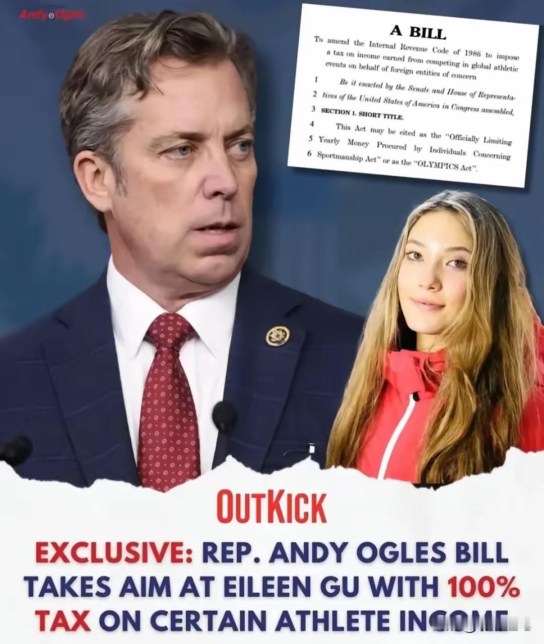 实在太离谱!美国共和党要对谷爱凌收100%税! 当美国副总统万斯、财政部长贝森特还停留在口头指责,美国共和党已动真格!根据2月27日美媒《OutKick》实锤:众议员奥格尔斯推OLYMPICS Act,点名谷爱凌,拟对代表中国参赛的美籍运动员奖金、赞助费征100%联邦税,赚多少收多少。 这项被外界直接称为“谷爱凌法案”的提案,赤裸裸把政治偏见写进法条。奥格尔斯公开放话,代表中国参赛就是“背叛国家”,必须没收全部相关收入。 征税范围覆盖赛事奖金、商业赞助、出场费等所有相关收益,100%征收等于直接清零收入。如此极端的惩罚性条款,在现代体育史上都极为罕见。 谷爱凌2019年已依法完成国籍变更,不再是美国公民,从法律层面根本不在征税对象里。政客们无视事实,只为制造舆论靶子收割流量。 她在北京冬奥会斩获2金1银,2026年再添1金2银,用实力为中国冰雪争光。这份荣耀,却成了美国部分政客攻击抹黑的理由。 万斯与贝森特接连发声指责,共和党立刻跟进立法,整套操作充满选举算计。他们不在乎体育精神,只在乎拿年轻运动员当政治筹码。 体育本该跨越国界、无关立场,美国却把奥运赛场变成政治秀场。用税收武器打压运动员,彻底撕碎了他们一直标榜的自由与公平。 谷爱凌的收入均来自中国市场,已按中国法律足额纳税。依据中美税收协定,美国无权跨境重复征收,这项法案从法理上就站不住脚。 奥格尔斯至今未获得其他议员联署,法案通过概率几乎为零。这更像一场政治表演,用极端言论博取关注度,消耗体育的纯粹性。 真正的体育强国,敢于尊重运动员的自主选择,包容不同的职业道路。靠打压与报复彰显强势,只会暴露格局的狭隘与底气的匮乏。 谷爱凌从未被流言与威胁影响,始终专注赛场、突破自我。她用成绩回应偏见,用热爱坚守初心,比所有政治操弄都更有力量。 把运动员当成政治工具,用立法搞恶意报复,只会让美国的国际形象不断失分。这样的操作,既输了风度,也丢了格局。 各位读者你们怎么看?欢迎在评论区讨论。