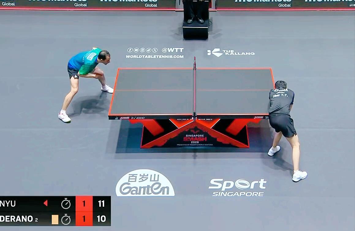 笑死我了!雨果擦桌子吃到了一张黄牌。 陈垣宇打的太好了, 第一局 虽然5:11输了 第二局 11:9拿下 第三局 两人打的胶着, 一路打到了10;10, 雨果有些急眼了, 不断的擦桌子, 此时陈垣宇发球, 裁判给了雨果一个黄牌, 因为他干扰比赛进步。