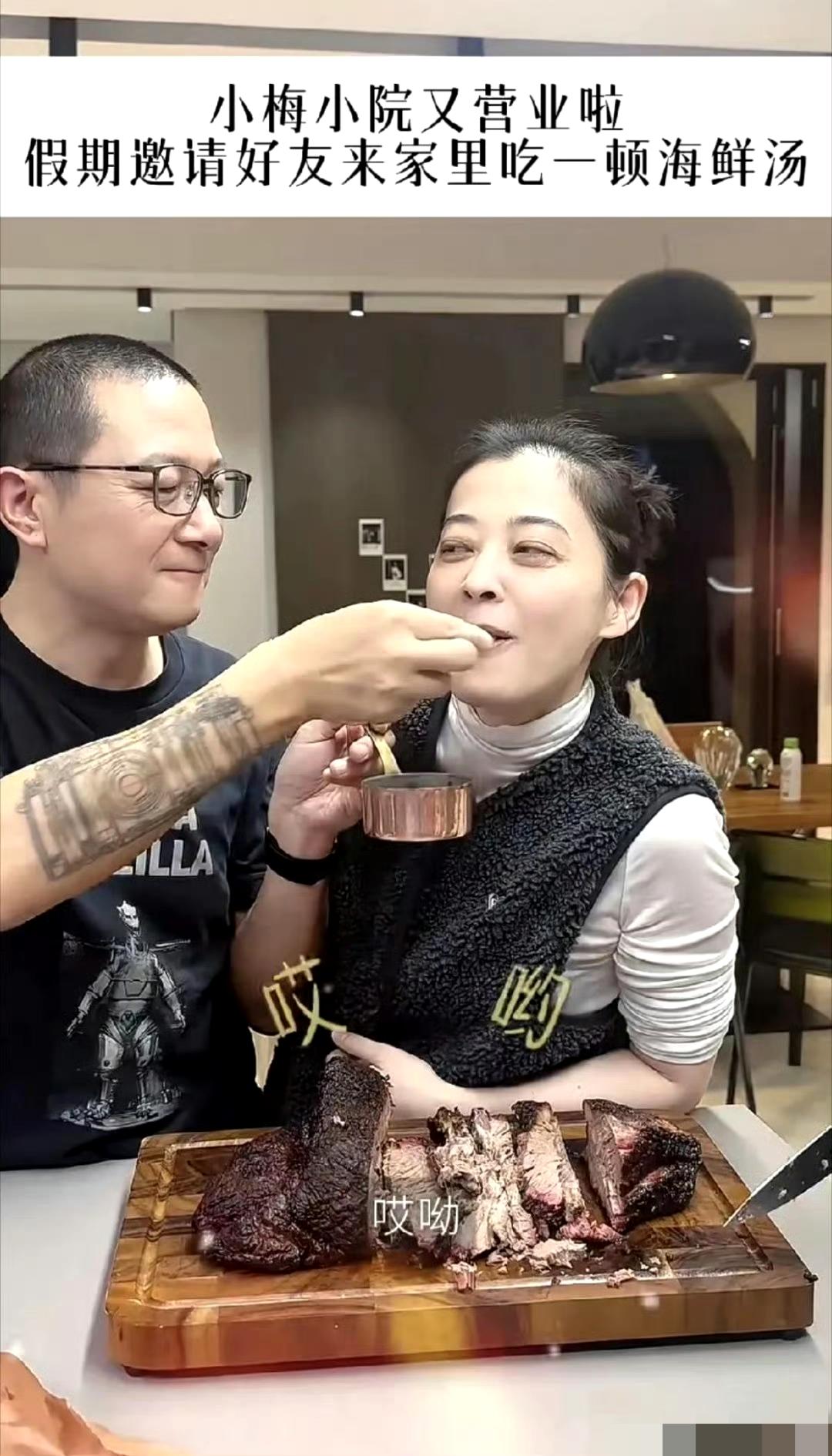 梅婷马年春节家宴太热闹!50岁状态惊艳,老公曾剑投喂甜度拉满 马年春节,演员梅婷的“小梅小院”再度营业,一场温馨的海鲜大餐家宴,尽显烟火气与幸福感。 镜头里,梅婷身着简约的黑白搭配,和好友围坐欢聚,桌上摆满丰盛的海鲜盛宴,举杯畅谈间笑容灿烂。最动人的莫过于老公曾剑的贴心投喂,一个温柔的动作,满是藏不住的宠溺,夫妻间的默契与甜蜜溢出屏幕。 如今50岁的梅婷,在二婚的幸福里越活越年轻。褪去荧幕上的角色滤镜,私下的她面色红润、气质温婉,眼角眉梢都是被爱滋养的从容。这份不刻意的松弛感,不仅展现了她当下的幸福状态,也让网友直呼:被爱情和家庭宠爱的女人,果然自带光芒! 梅婷 梅婷曾剑 明星春节日常
